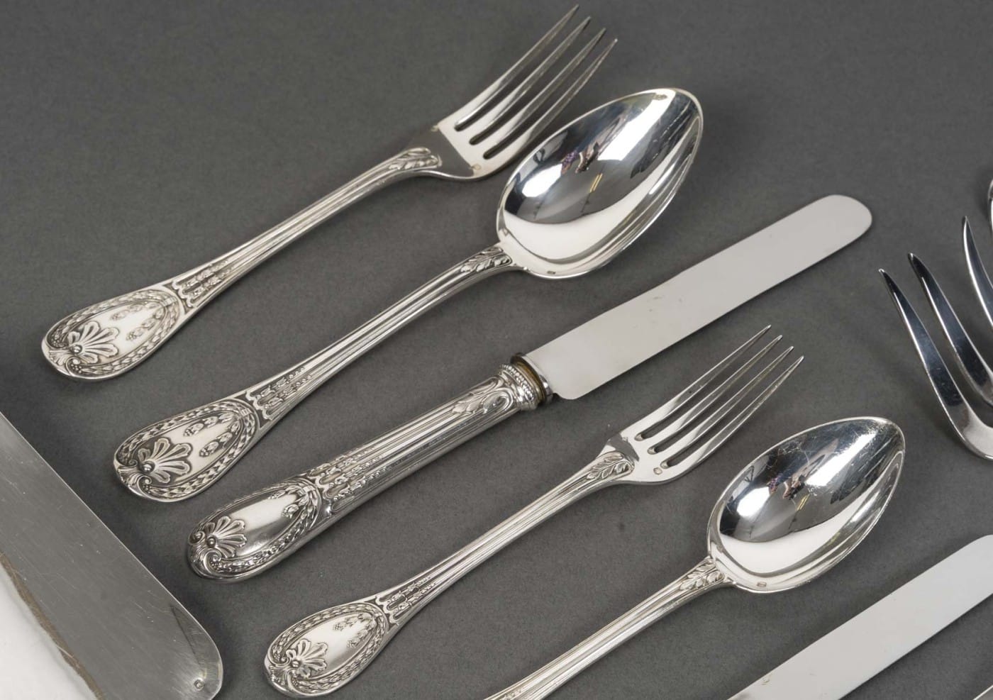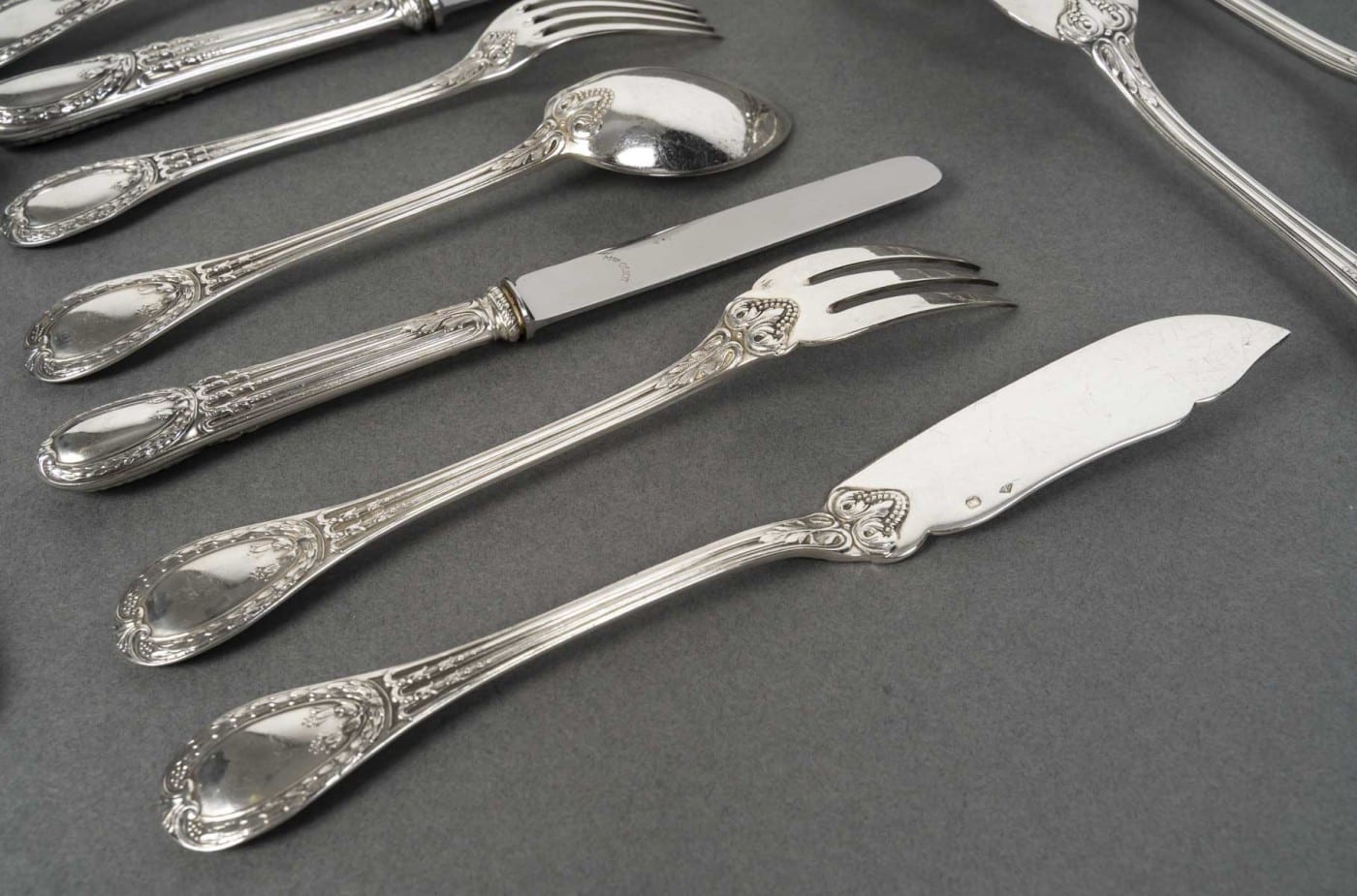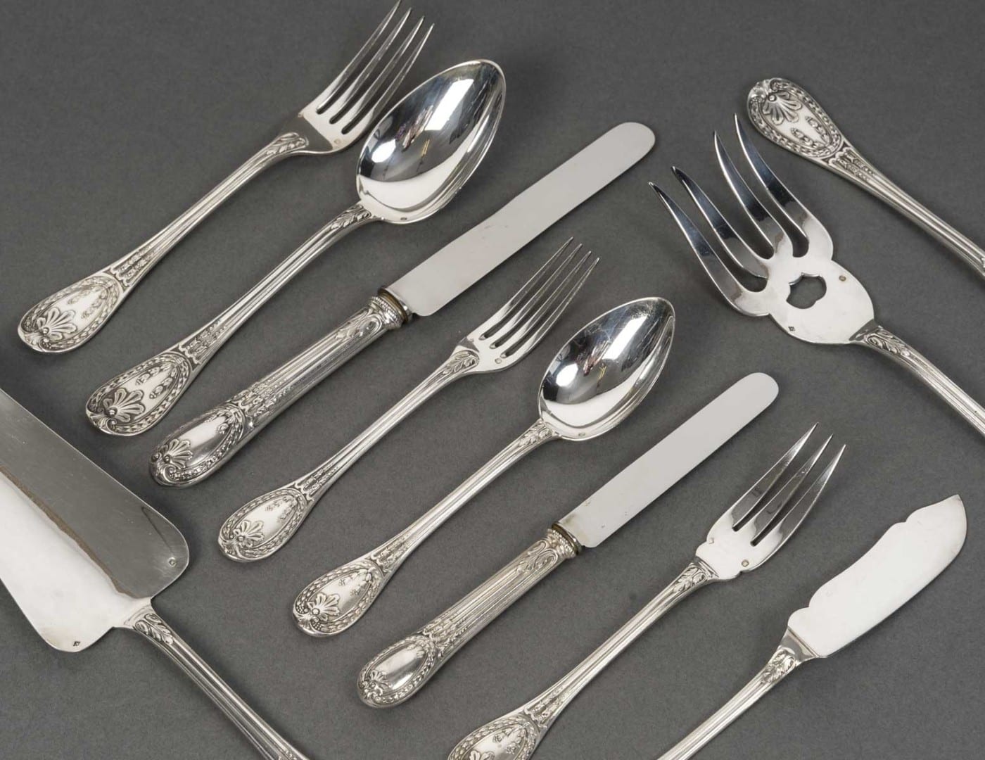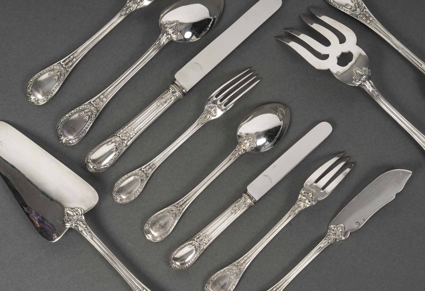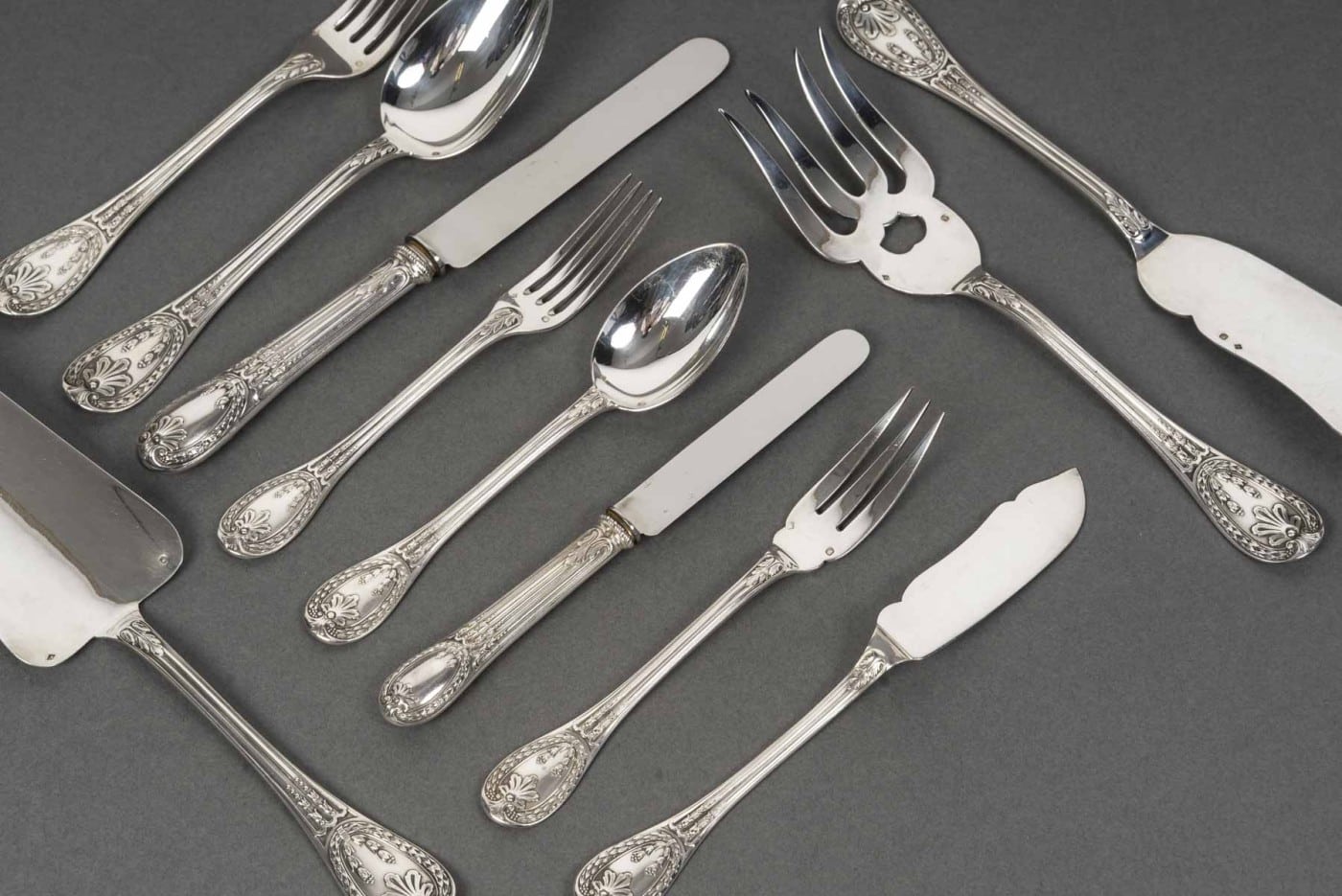 ODIOT – Ménagère modèle « LOUVECIENNES » 99 pièces Argent massif XXème