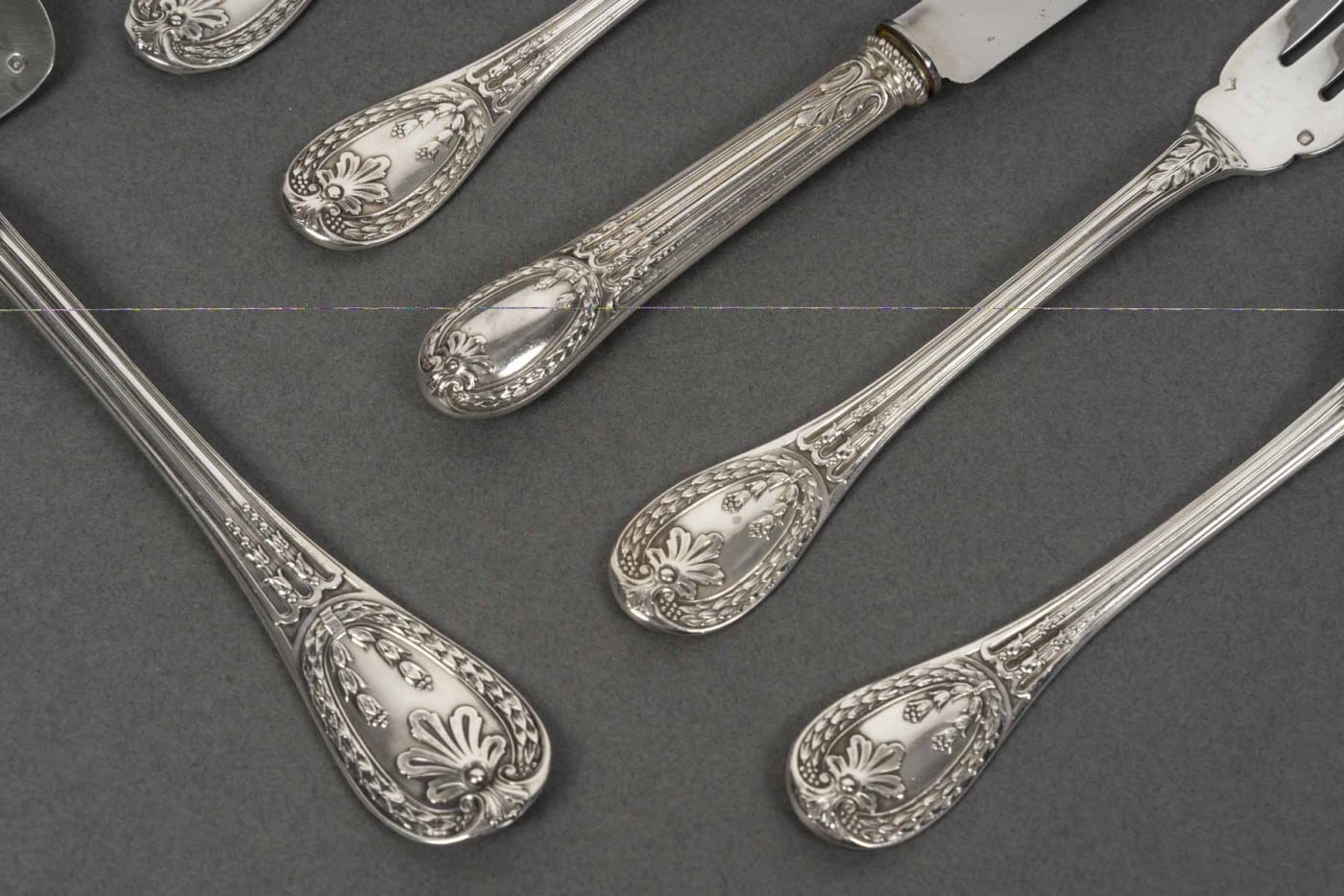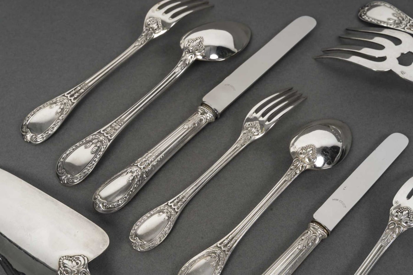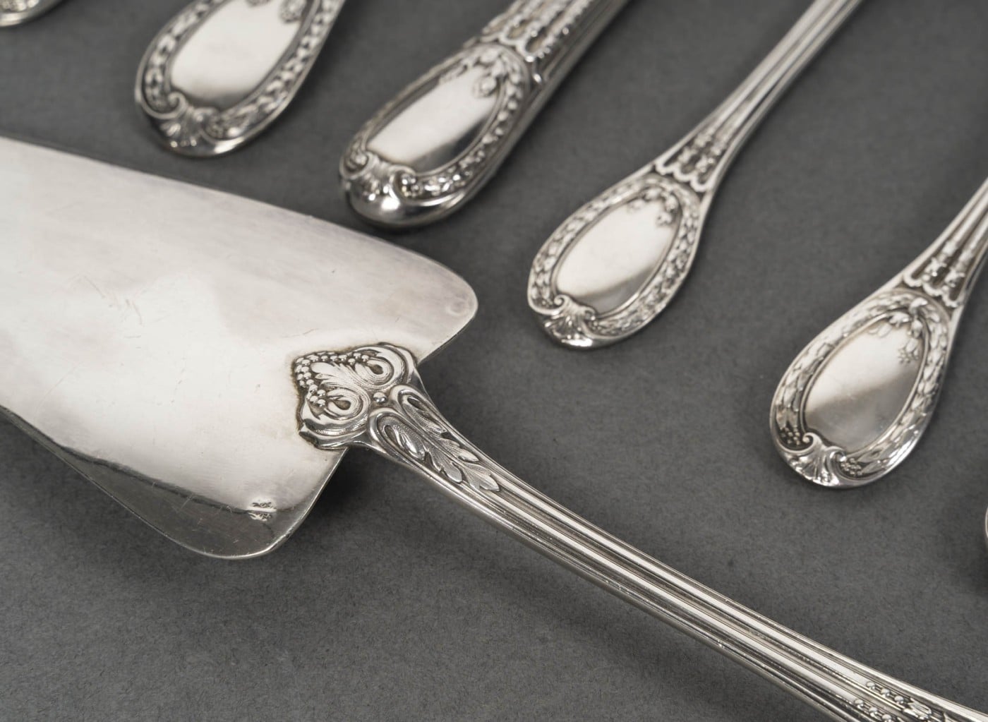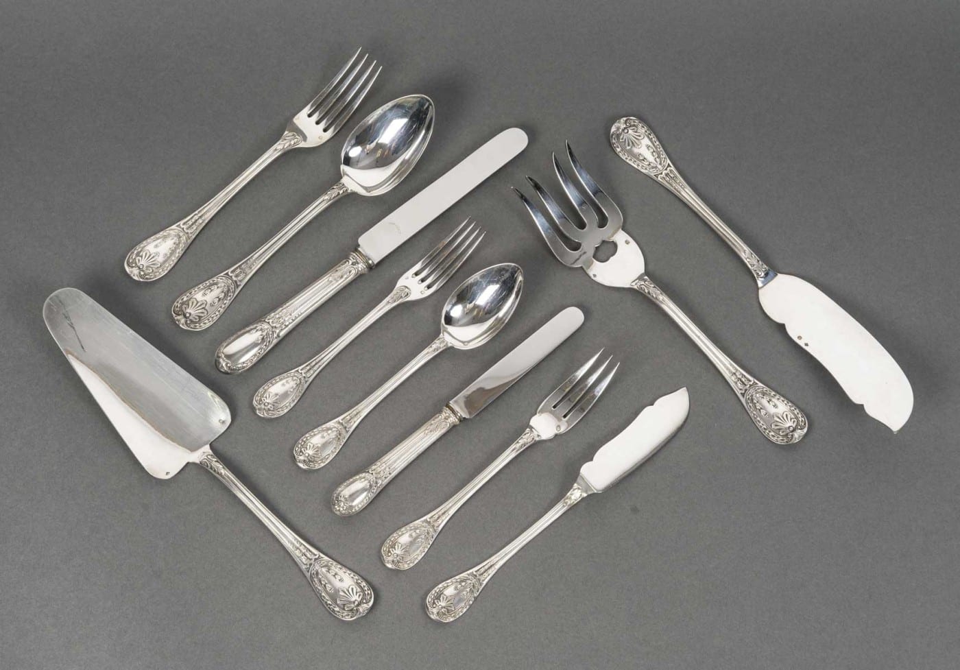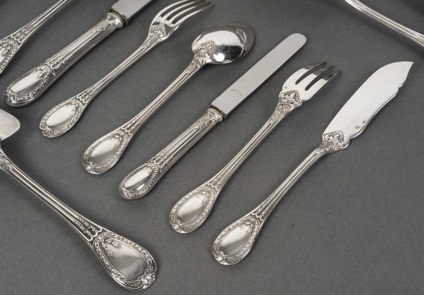 ODIOT – Ménagère modèle « LOUVECIENNES » 99 pièces Argent massif XXème