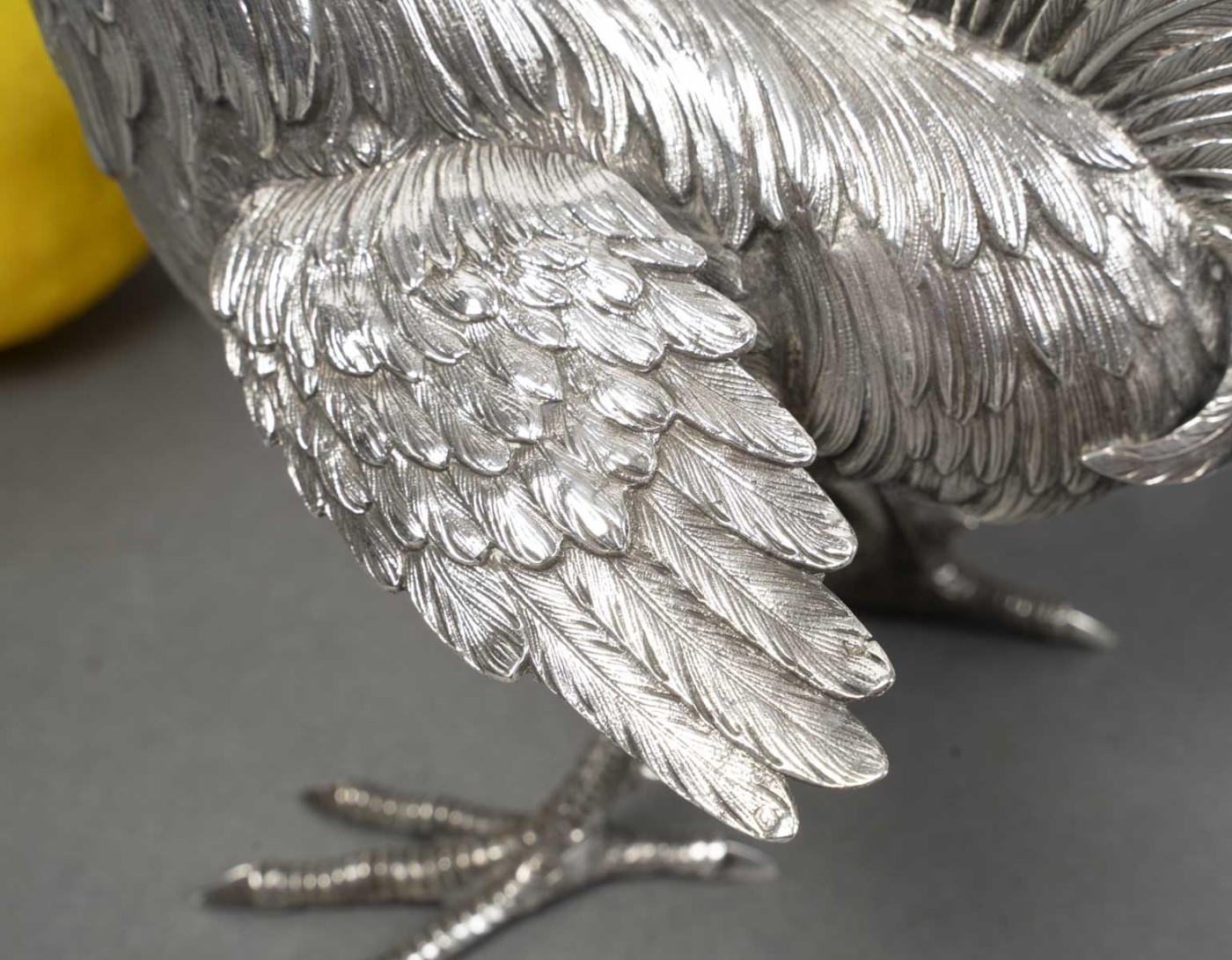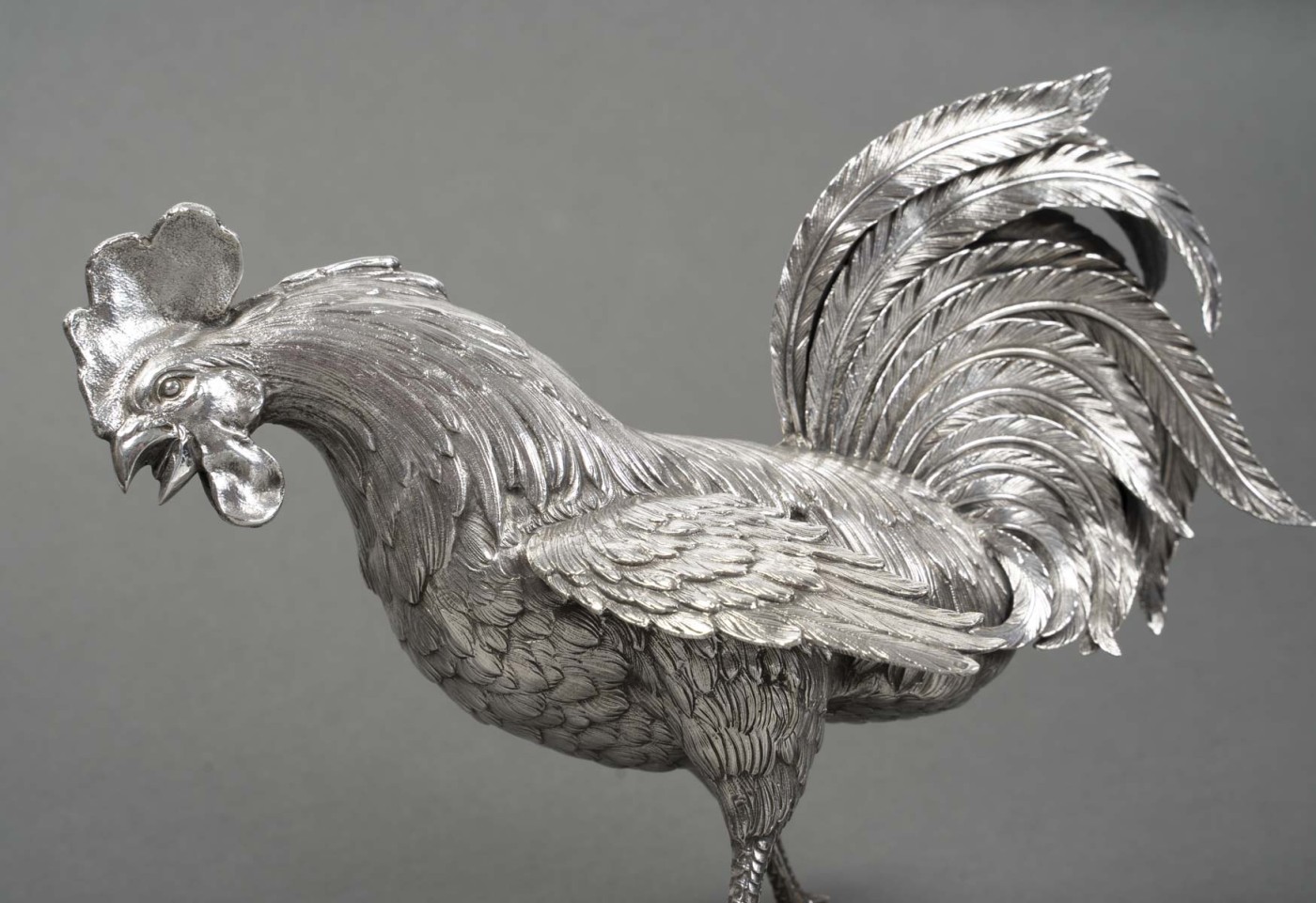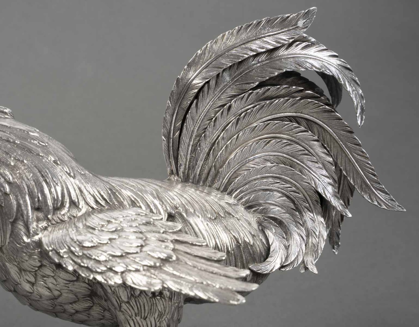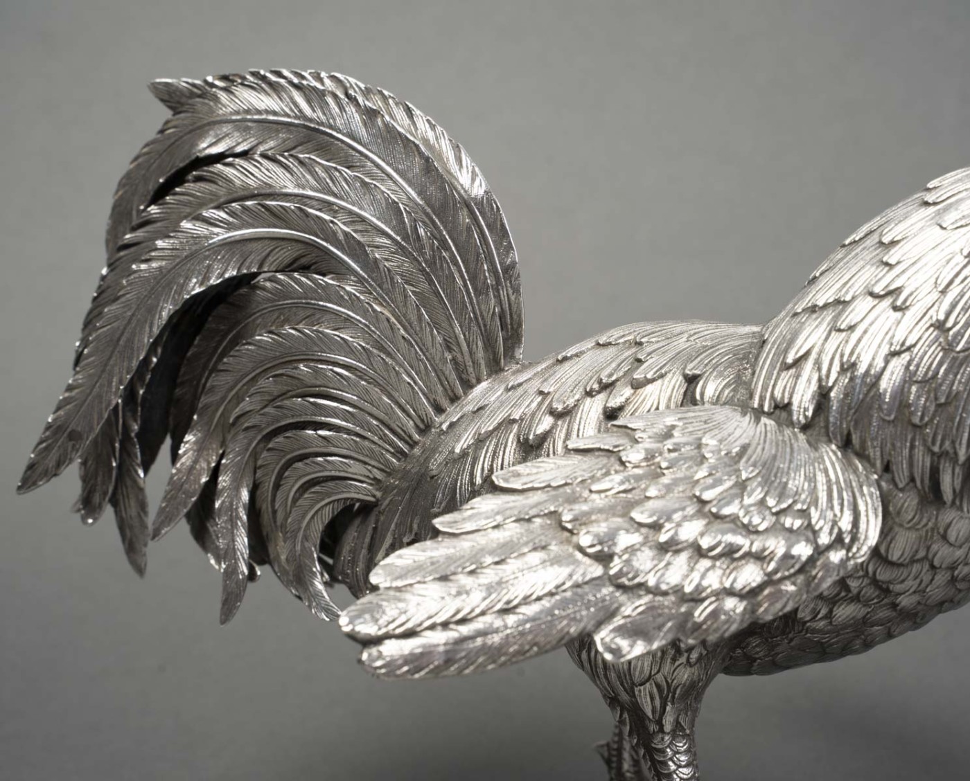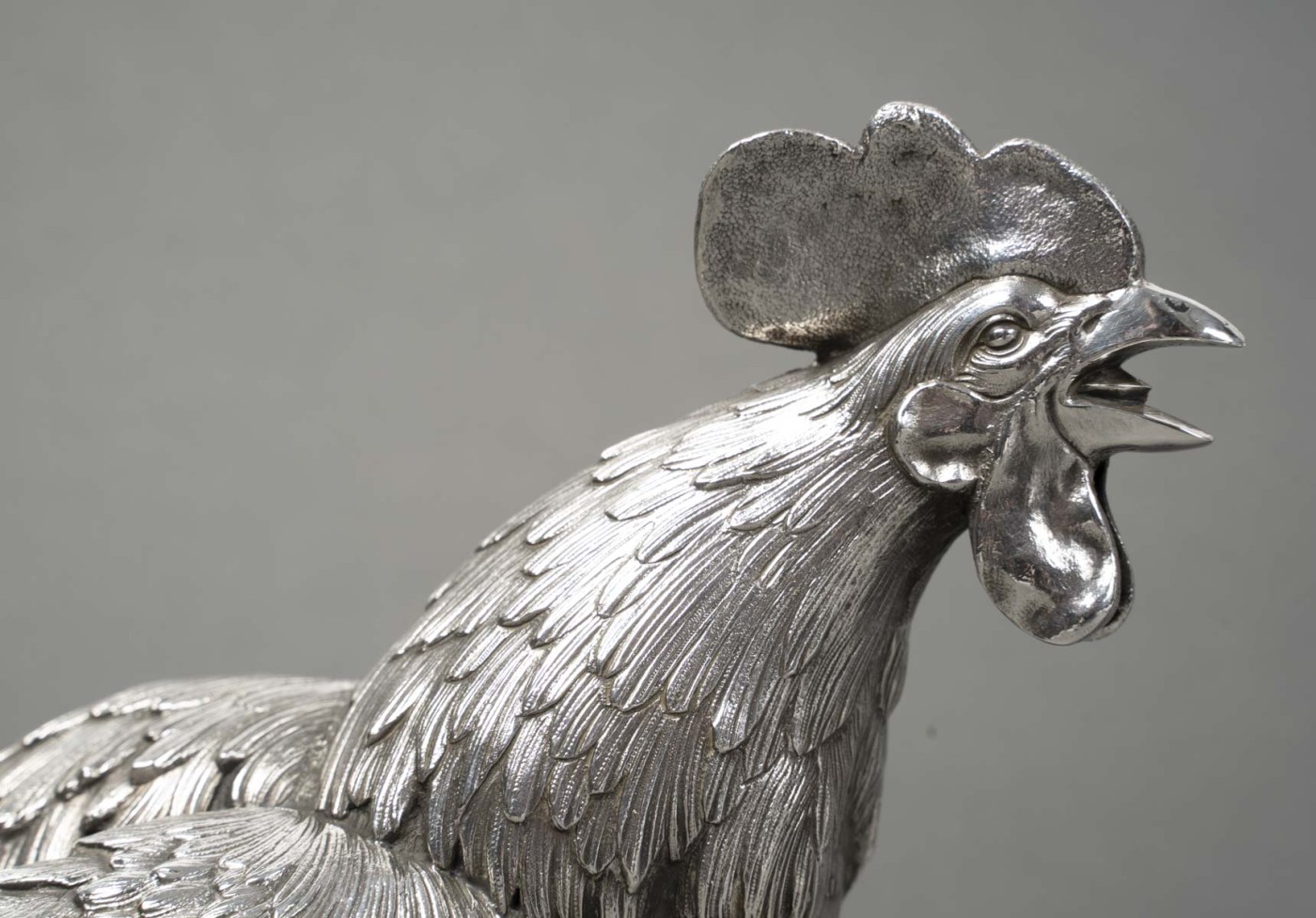 Orfèvre ESCHWEGE Paire de coqs combattant en argent massif circa 1950