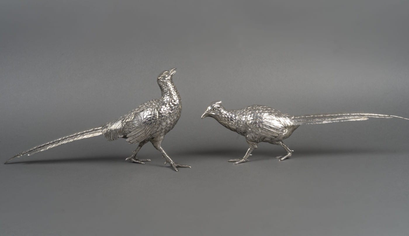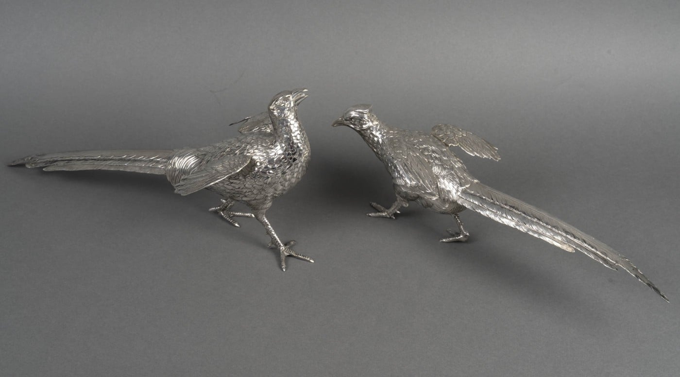 Orfèvre ESCHWEGE – Paire de Faisans en argent massif XXème