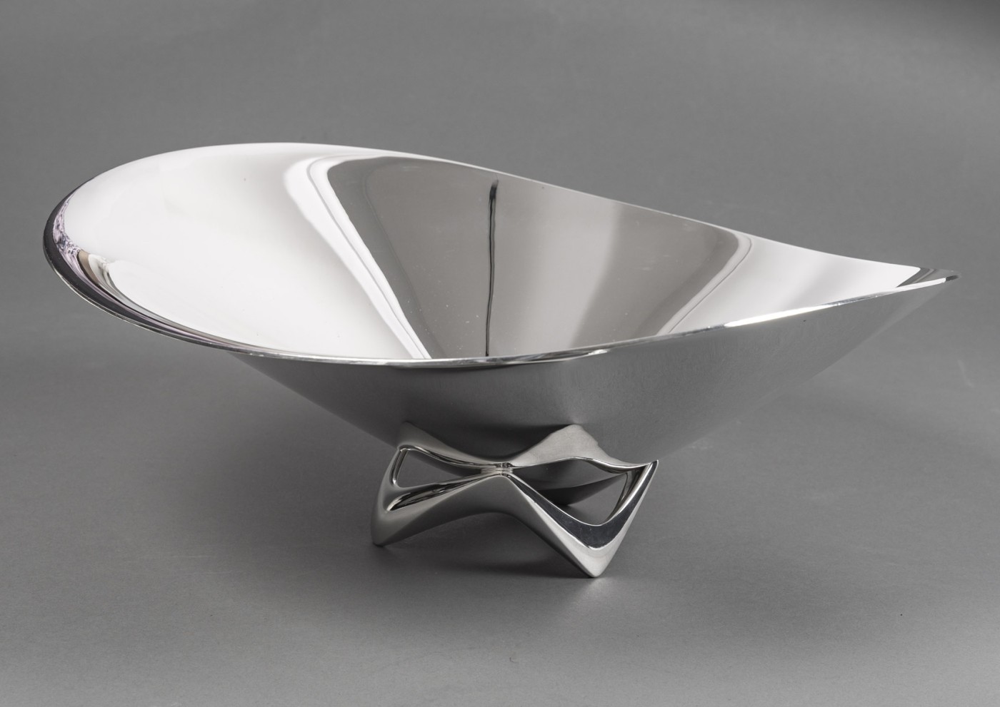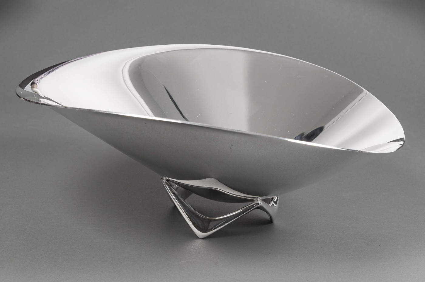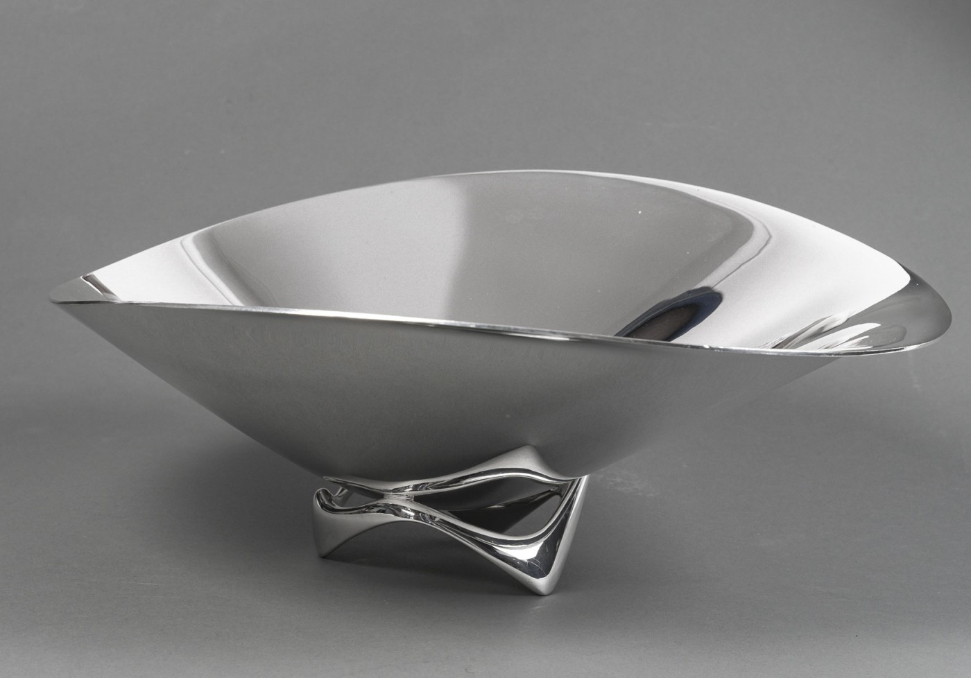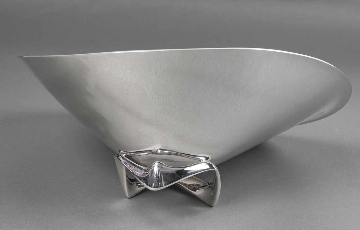 ORFEVRE G. JENSEN – H. Koppel – Centre de table en argent massif XXeCentre de table en argent massif représenté par une grande coupe hélicoïdale (en forme d’hélice) – Modèle “980 A” conçue en 1948 par le designer HENNING KOPPEL (1918 – 1981) pour l’Orfèvre G. JENSEN