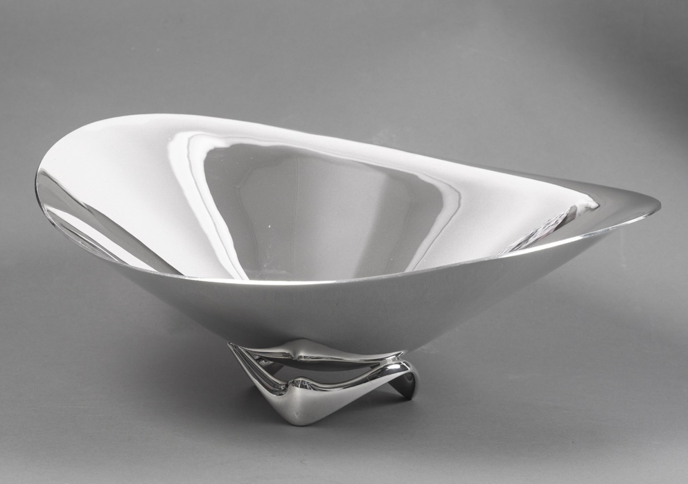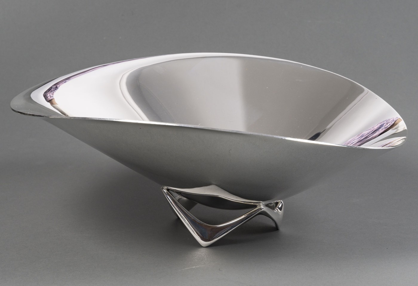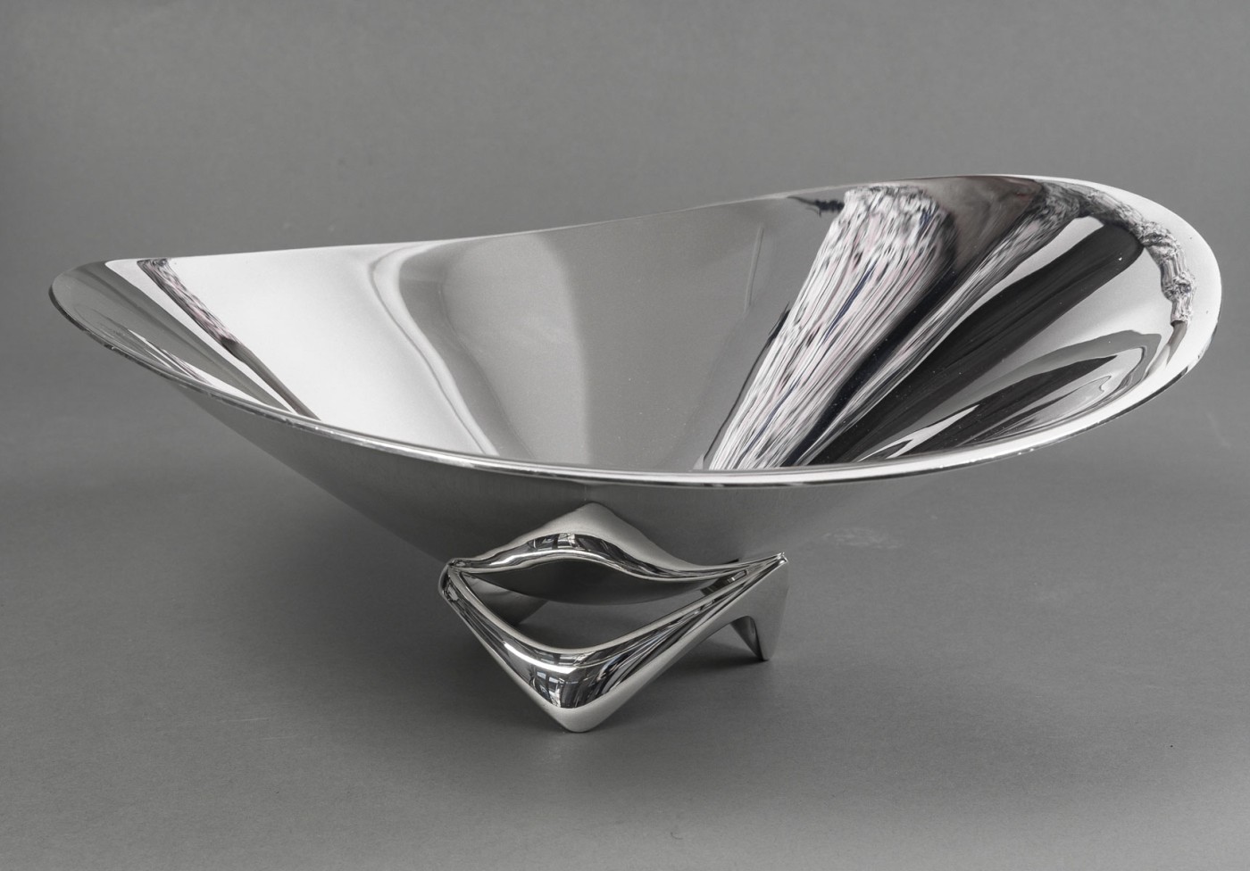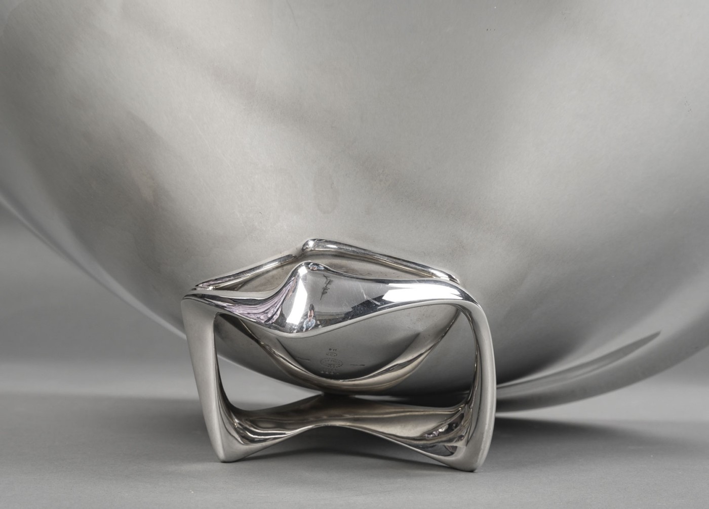 ORFEVRE G. JENSEN – H. Koppel – Centre de table en argent massif XXeCentre de table en argent massif représenté par une grande coupe hélicoïdale (en forme d’hélice) – Modèle “980 A” conçue en 1948 par le designer HENNING KOPPEL (1918 – 1981) pour l’Orfèvre G. JENSEN