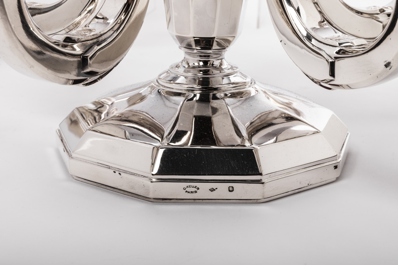 Orfèvre Gustave KELLER Paire de Candélabres argent massif Epoque ART DECO