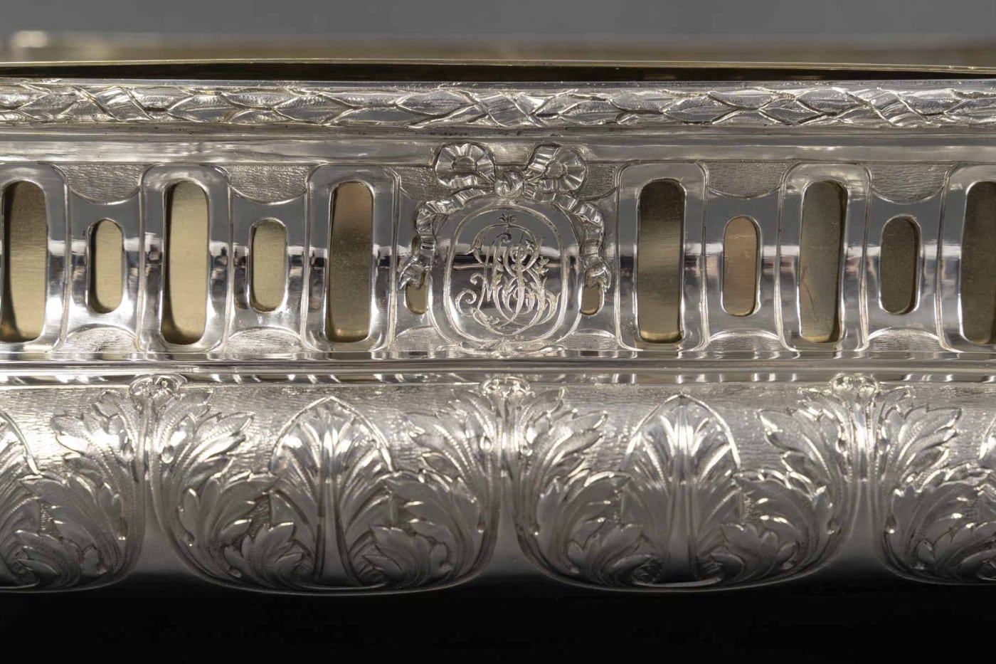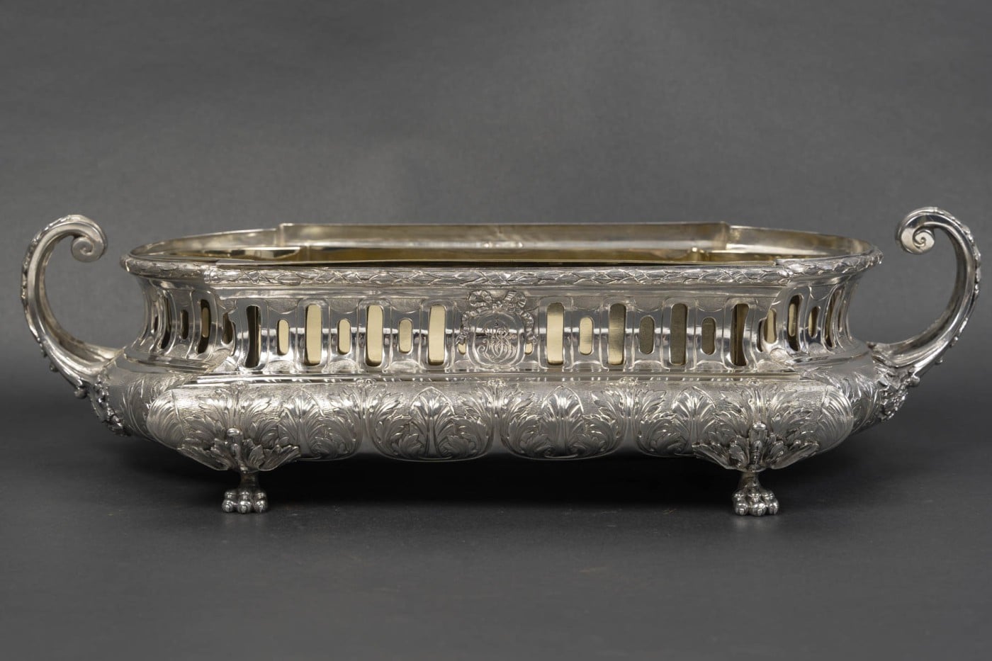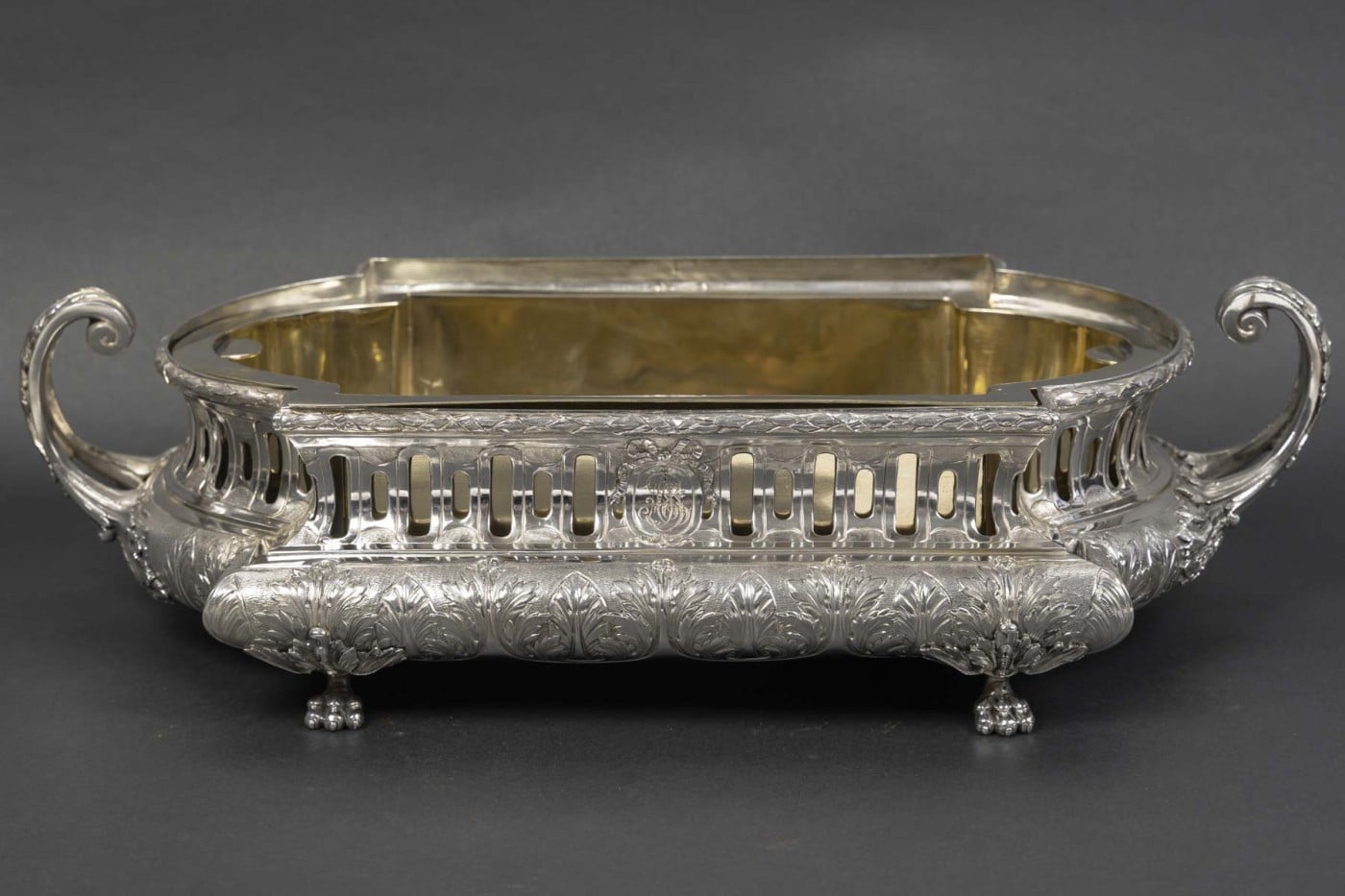 Orfèvre Mérite – Jardinière rectangulaire argent massif anses latérales, XIXᵉ