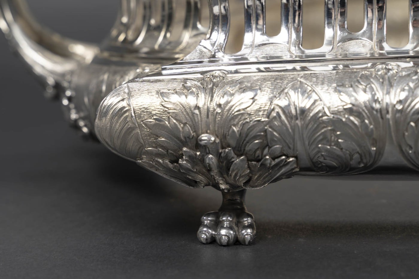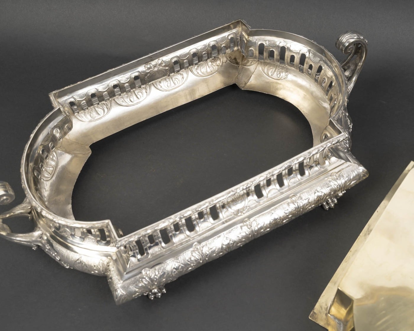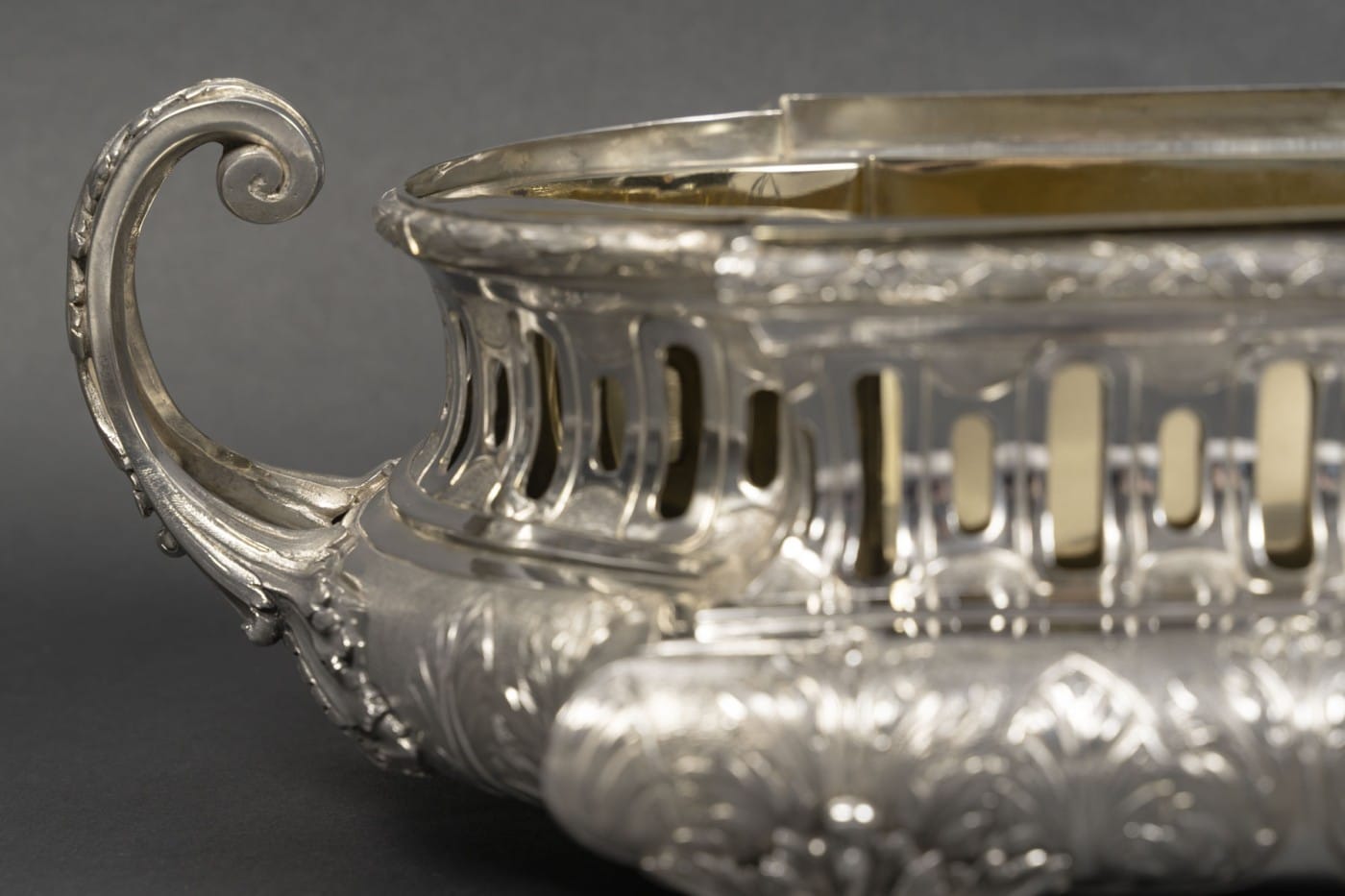 Orfèvre Mérite – Jardinière rectangulaire argent massif anses latérales, XIXᵉ