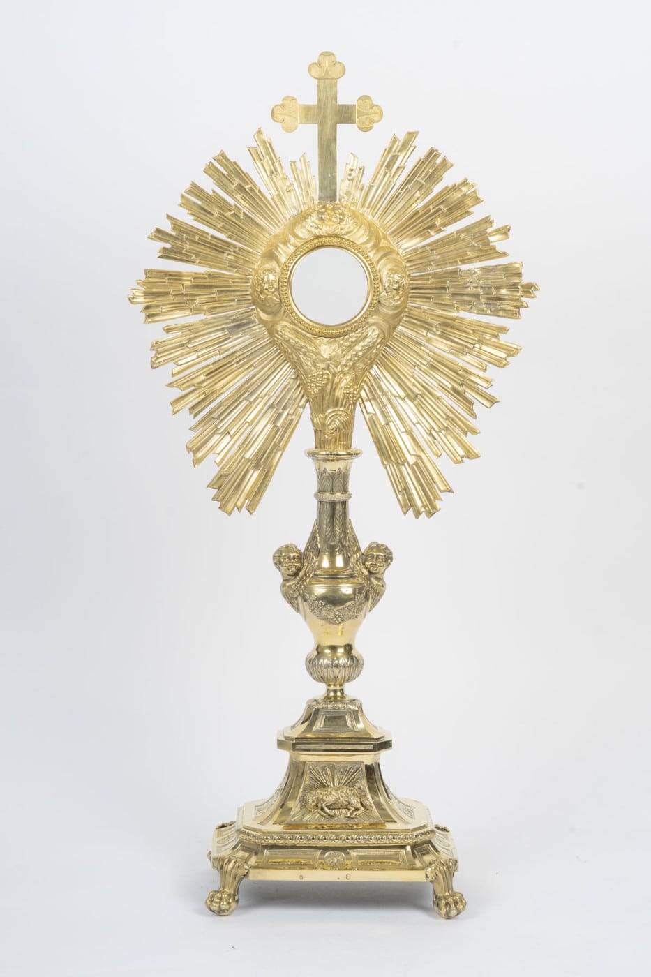 Ostensoir rayonnant en bronze doré travaillé en mat et brillant, d »époque Napoléon III, XIXème siècle.