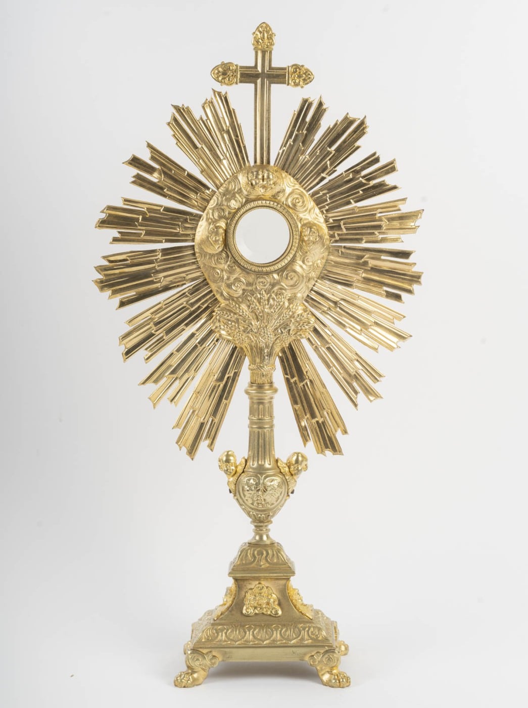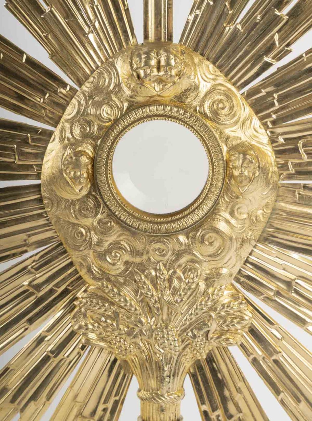 Ostensoir rayonnant en bronze doré travaillé en mat et brillant, d »époque Napoléon III, XIXème siècle.