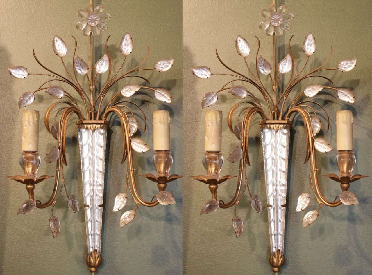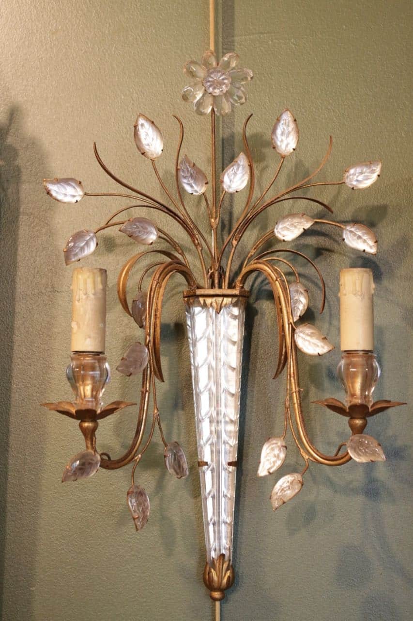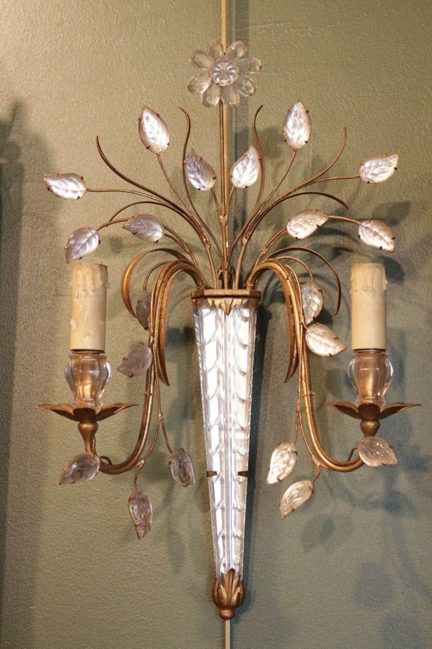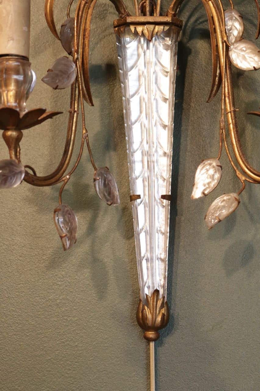 Belle paire d’appliques de la Maison Bagues en verre et bronze des années 1950. En très bon état.
