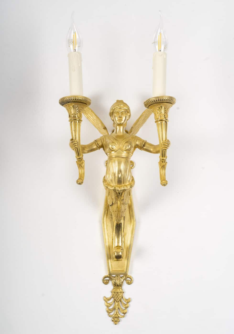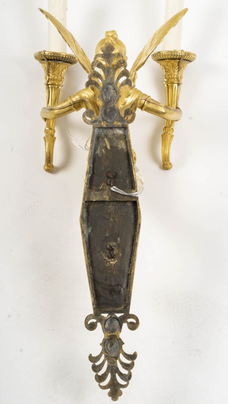 Importante paire d’appliques en bronze doré à deux bras de lumières, d’époque Ier empire (1804-1815).