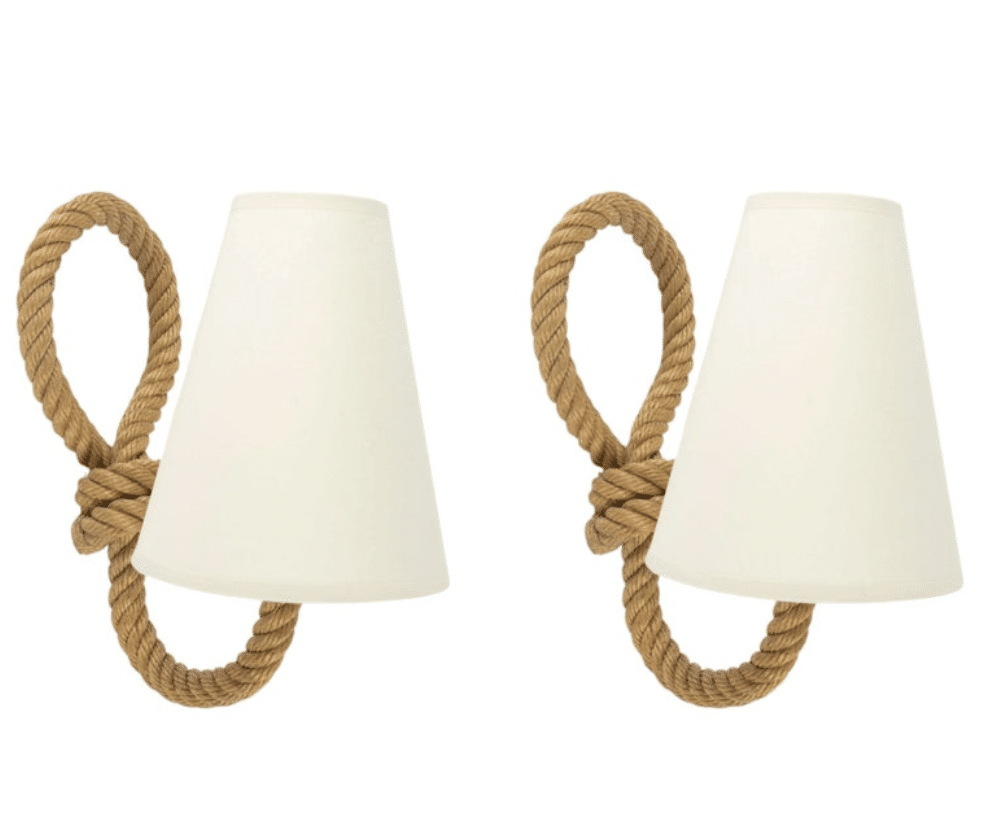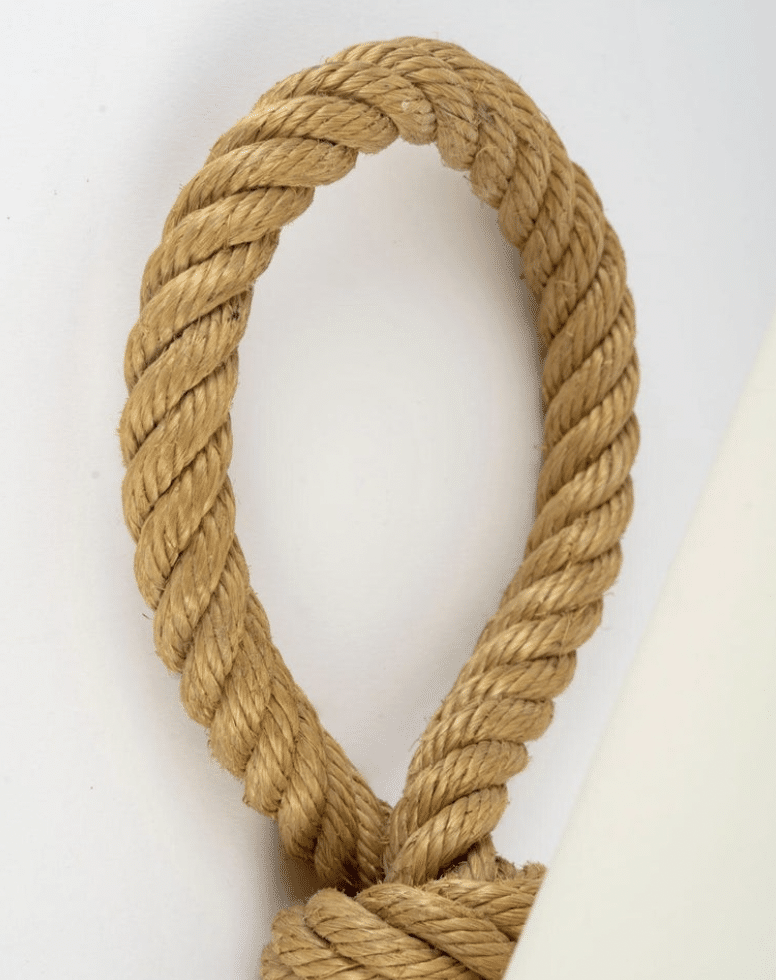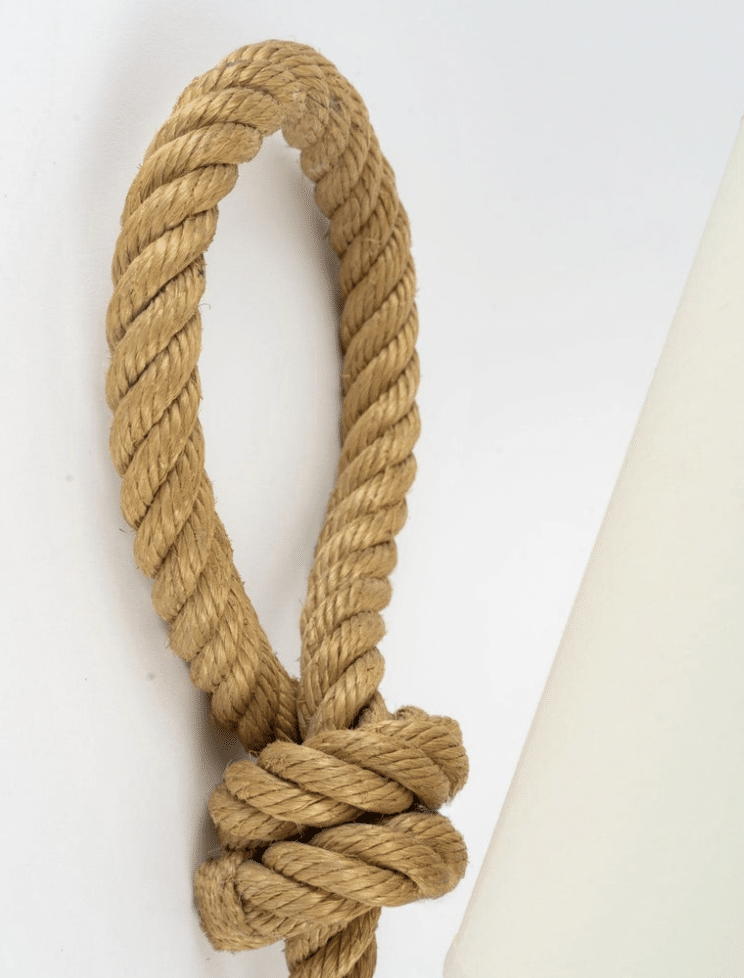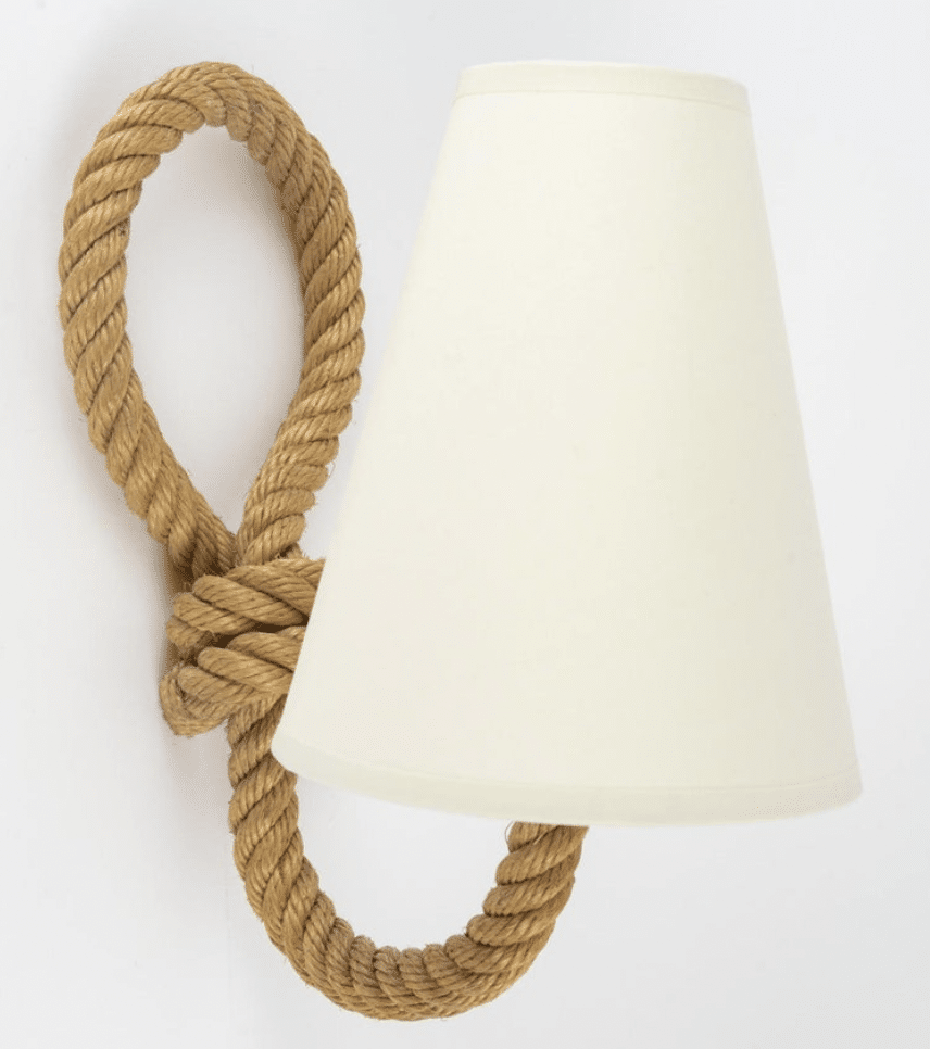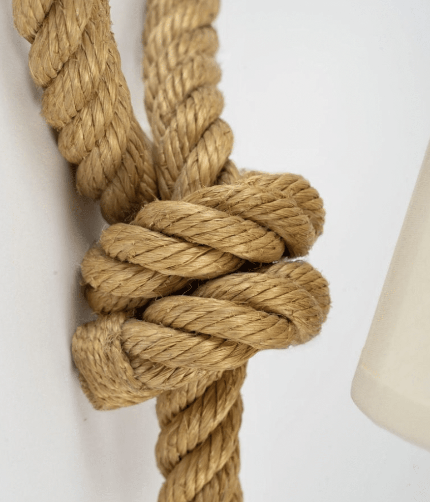 Chaque applique est composée d’un bras en corde qui se prolonge dans sa partie supérieure pour former une boucle.