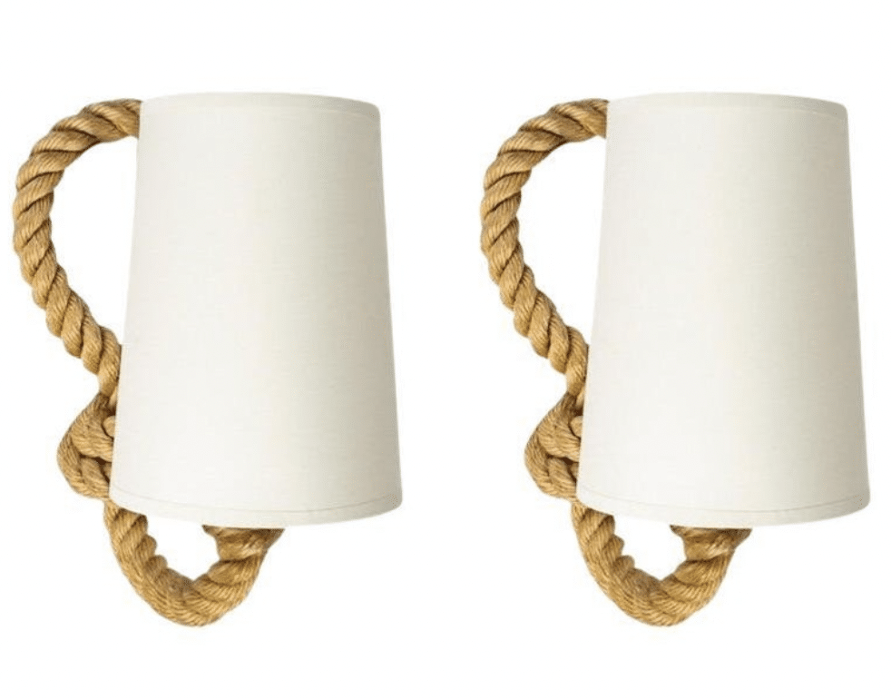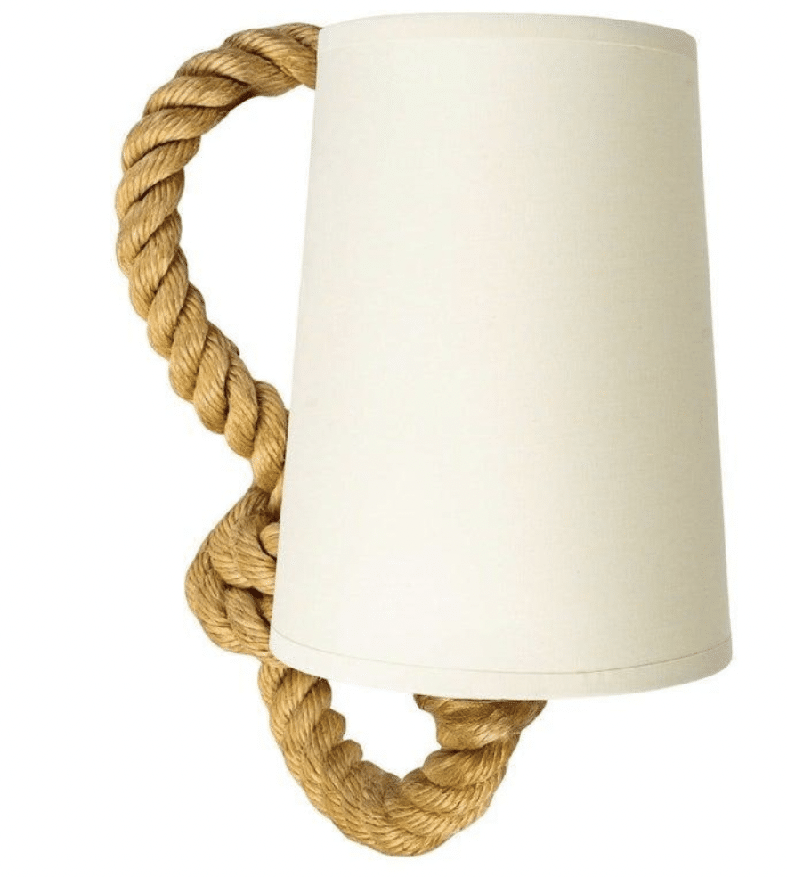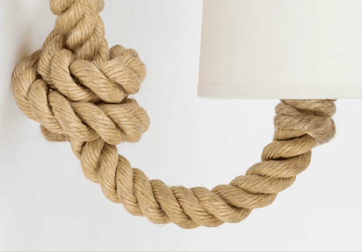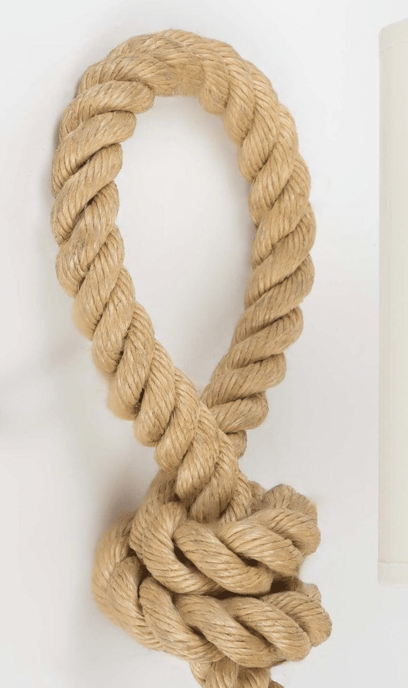 Chaque applique est composée d’un bras en corde qui se prolonge dans sa partie supérieure pour former une boucle.