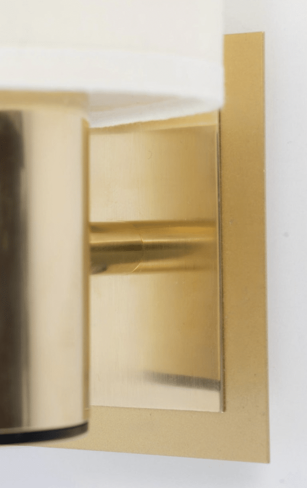 Composées d’une plaque murale carrée en laiton mat sur laquelle repose un carré plus petit en laiton plaqué or.