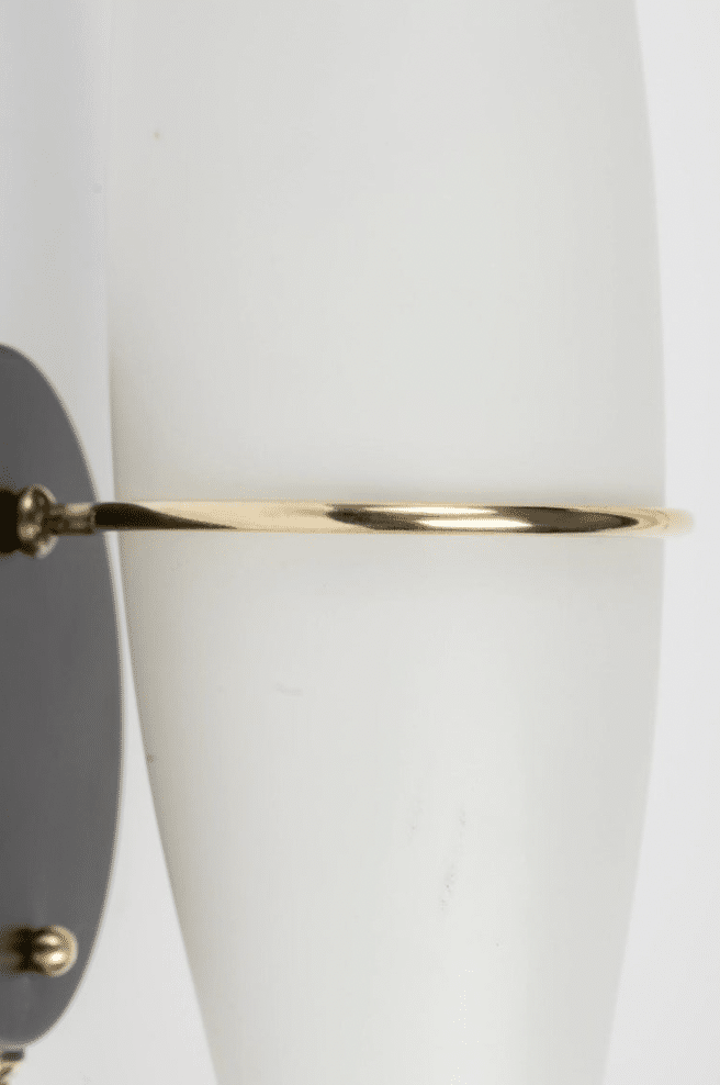 Composées d’une grande opaline blanche opalescente en forme de fuseau, maintenue par deux cercles en laiton doré.