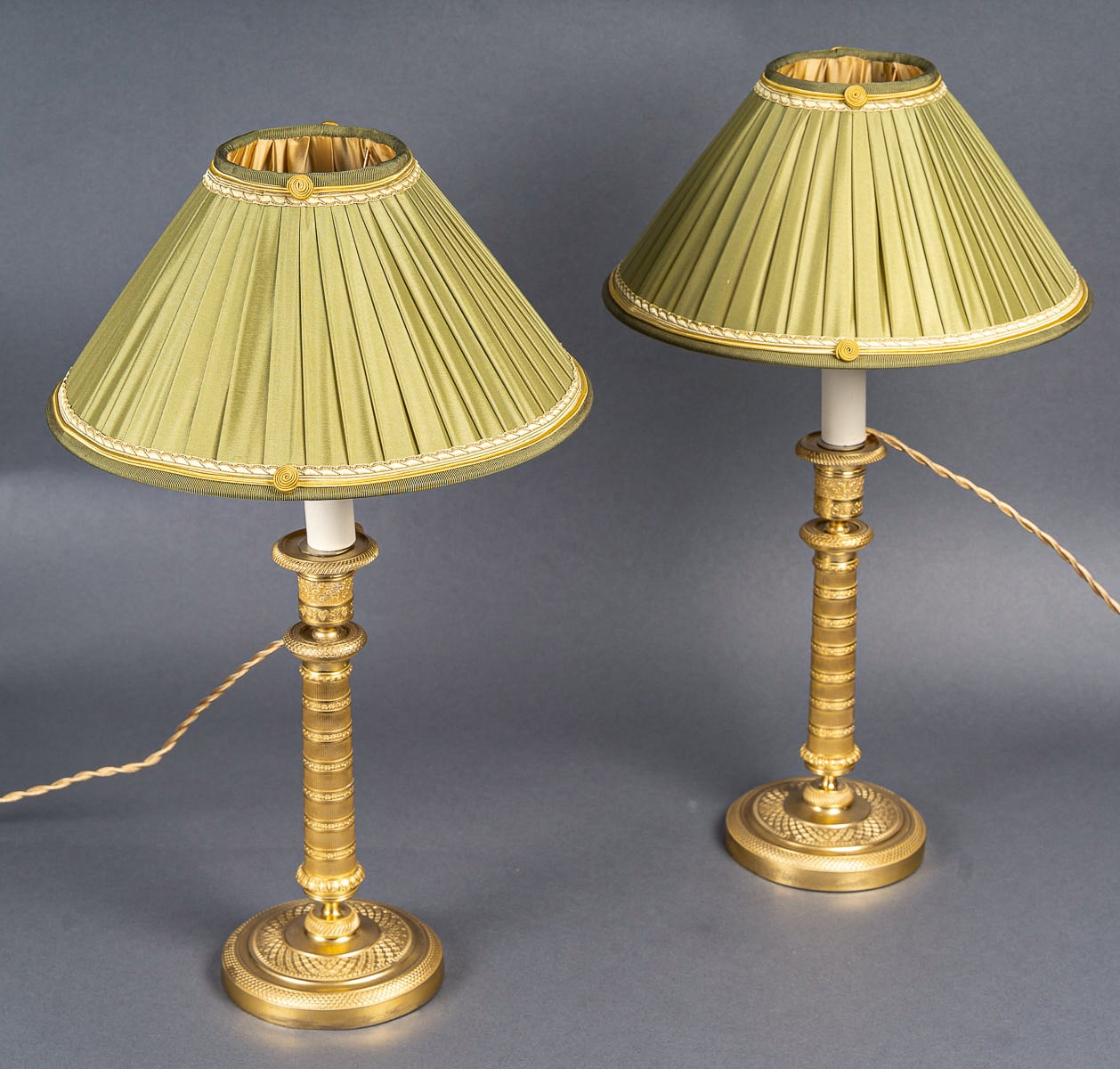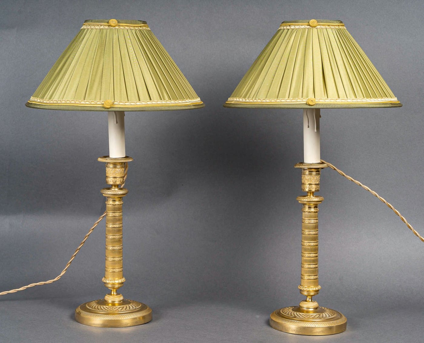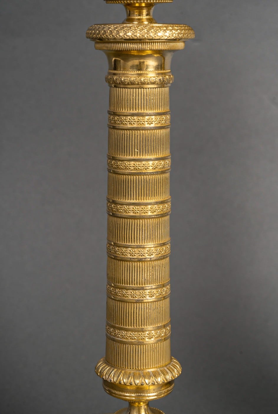 Paire de Bougeoirs d’époque Empire en Bronze ciselé Doré montés en lampes vers 1810
