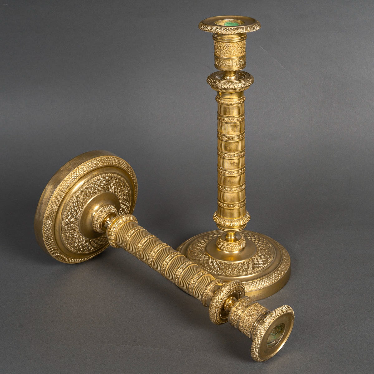 Crafted in France during the Empire period, circa 1805-1815, these candlesticks perfectly illustrate the style and quality of this era. Their refined design and meticulous details make them ideal pieces to enhance any elegant interior.