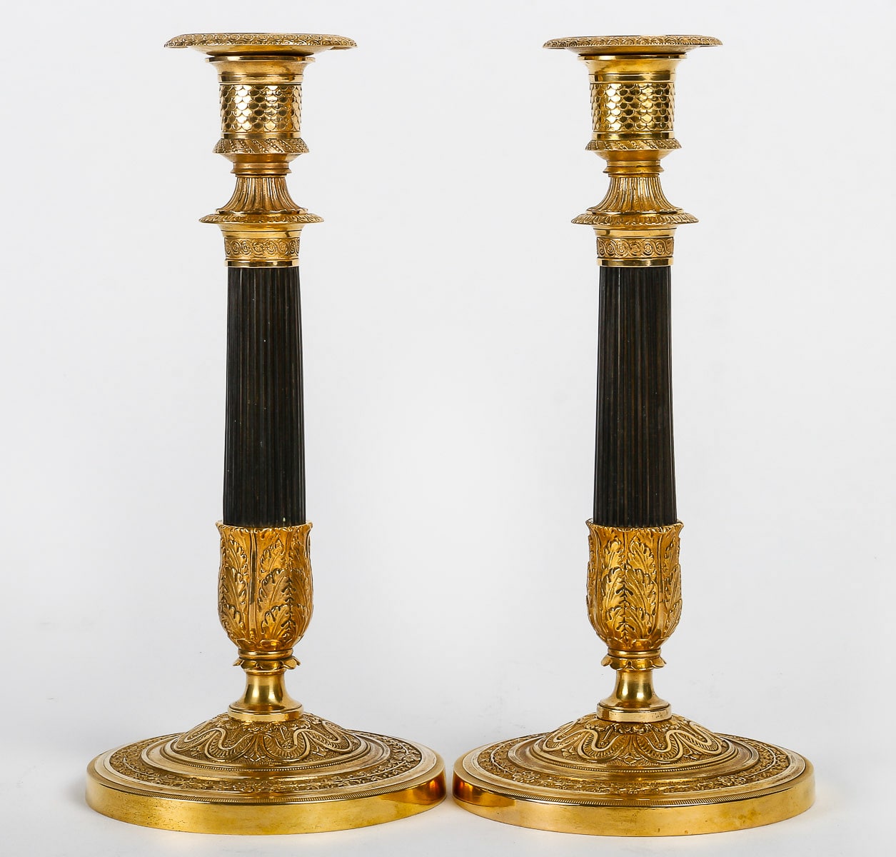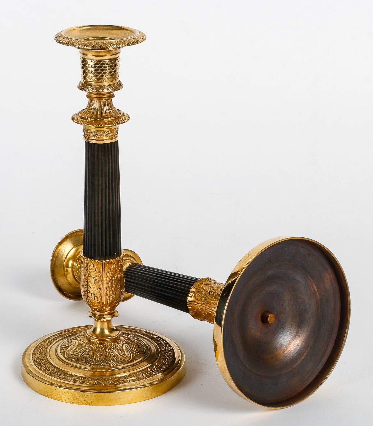 Crafted in France during the Empire period, circa 1805-1815, these candlesticks perfectly illustrate the style and quality of this era. Their refined design and meticulous details make them ideal pieces to enhance any elegant interior.