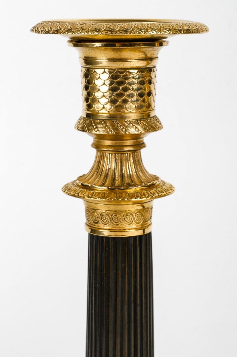 Pair of Empire Period Patinated and Gilt Bronze Candlesticks Mounted as lamps circa 1810