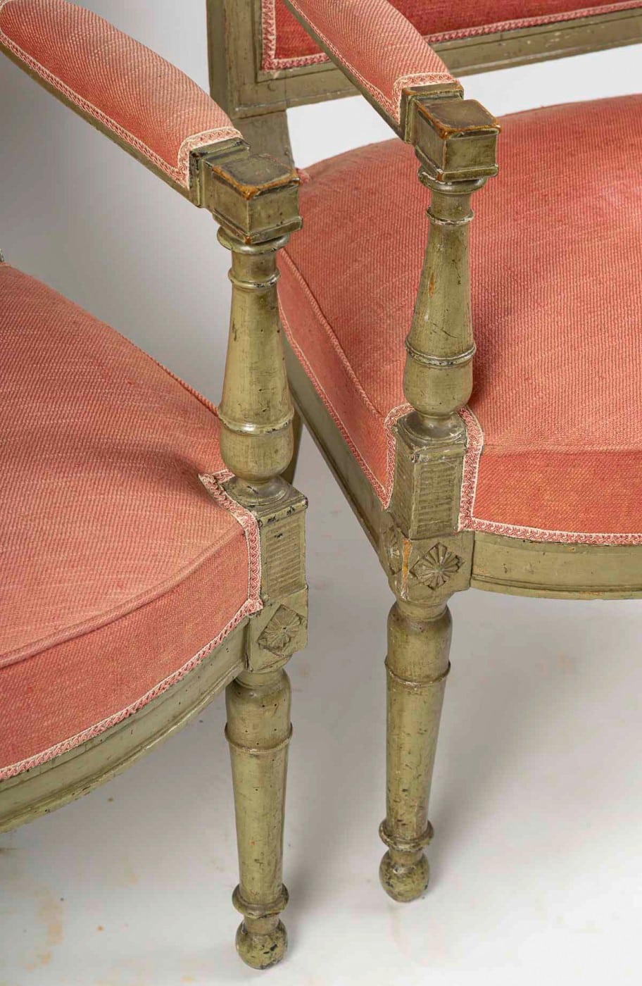 This work, likely Parisian, dates from the very late 18th century. The armchairs, in good used condition.
