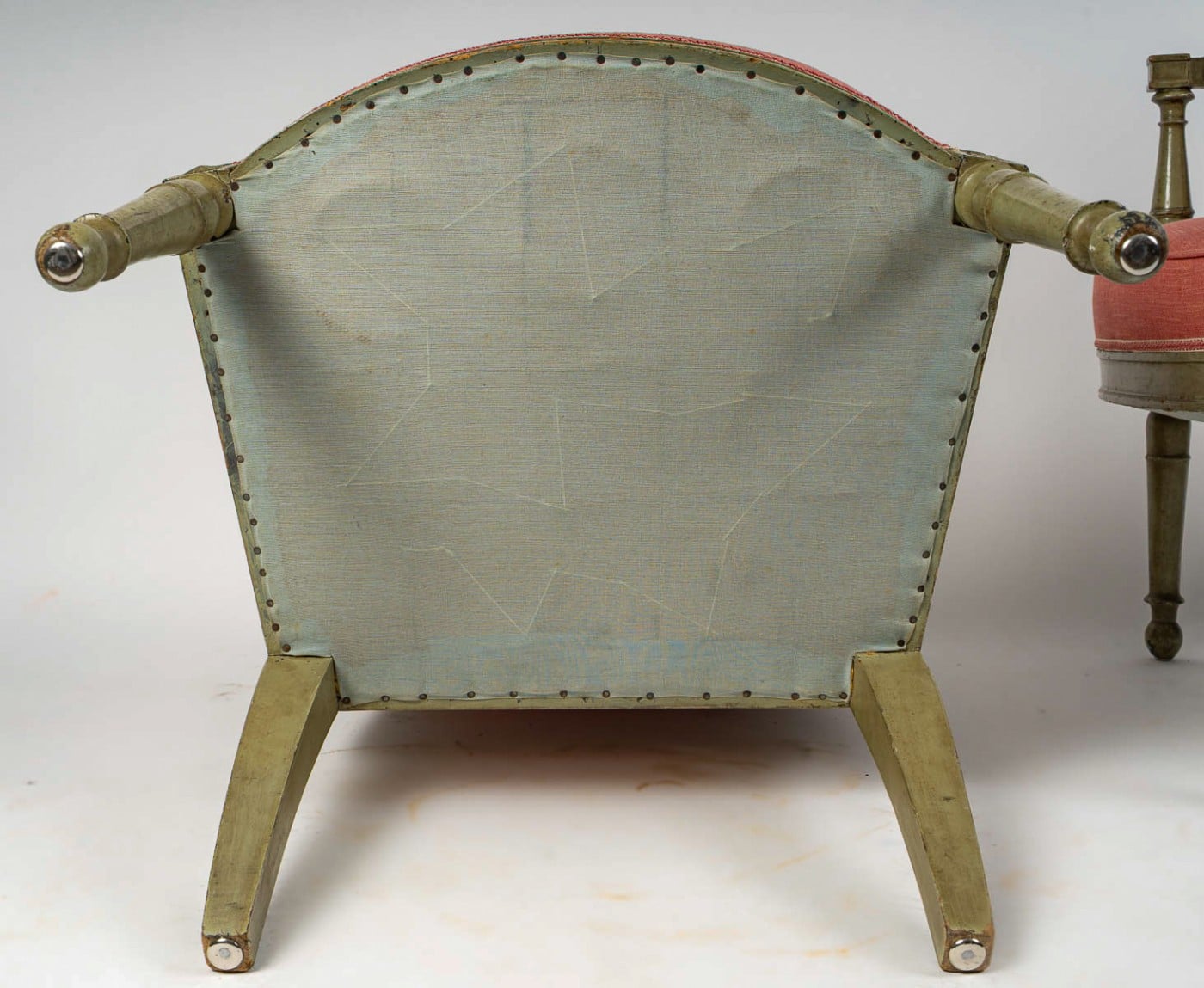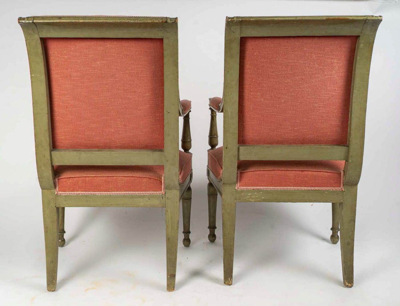 Pair of French Directoire Period Green Lacquered Beech Armchairs (1795–1799)