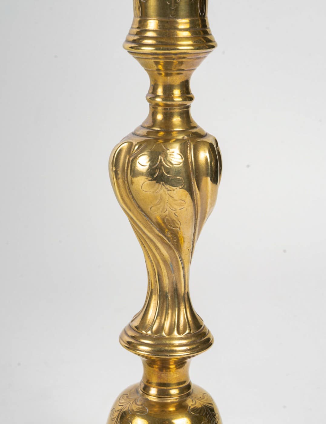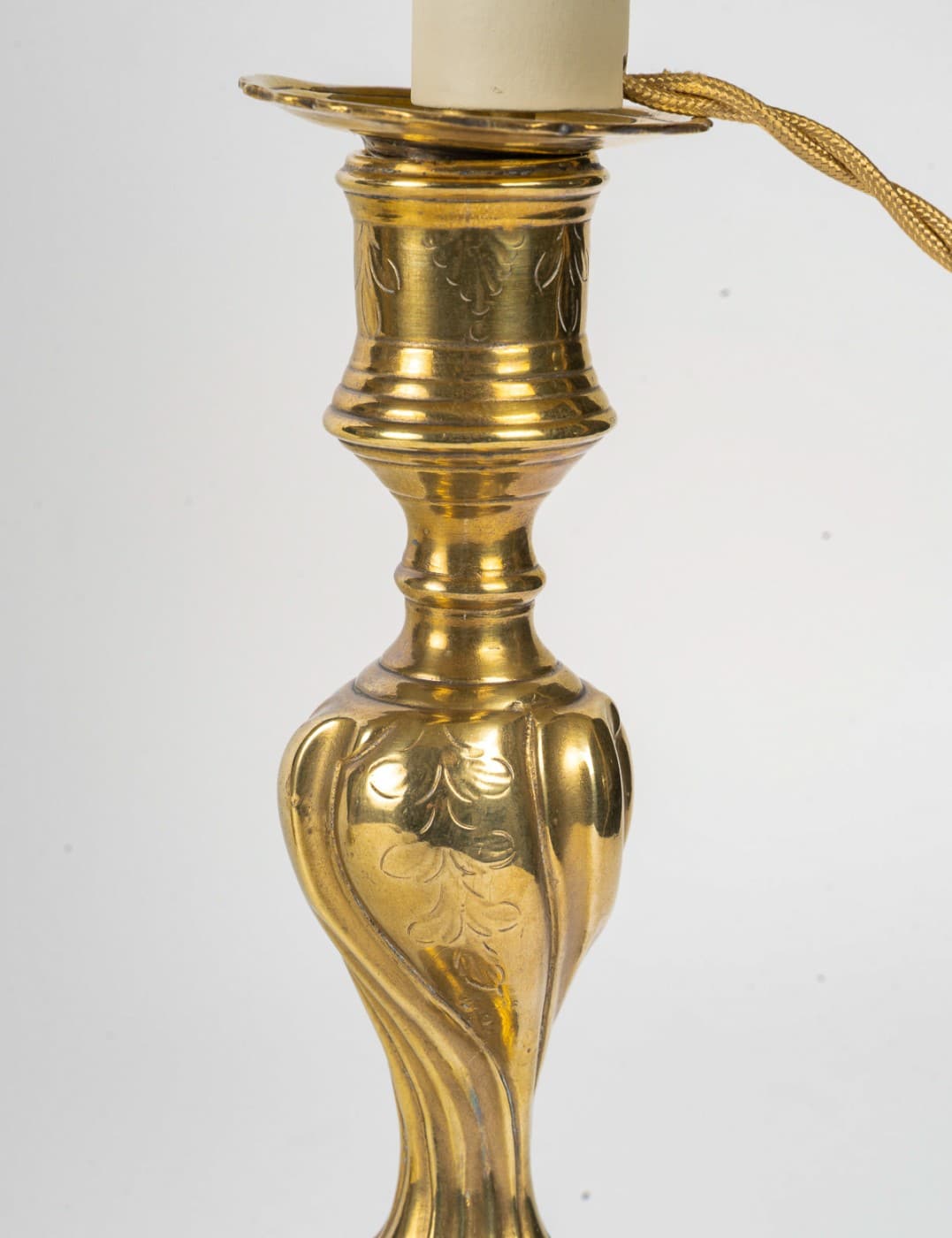 Pair of Candlesticks Mounted as Lamps in Chiseled and Gilt Bronze, Louis XV Period circa 1750