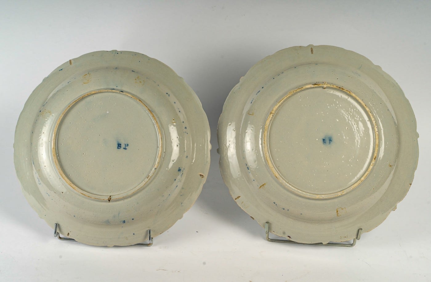 Marked with the monogram B P, these plates exemplify the exceptional craftsmanship of Delft faience factories in the mid-18th century, between 1740 and 1760. Their style and quality closely resemble a pair held in the Philadelphia Museum of Art’s Delft faience and ceramics collection.