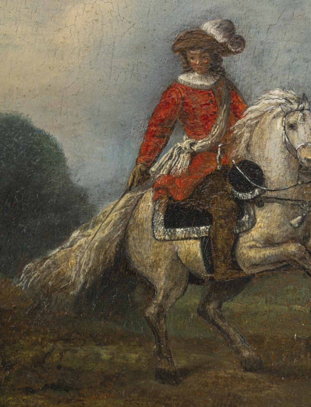 Vêtus avec élégance l’un est au galop et l’autre à l’arrêt. Les portraits équestres ont été très en vogue au XVIIème siècle, des peintres comme Van der Meulen, Parrocel et Velasquez entre autres ont représenté les Rois sur leur magnifique monture. On peut admirer celles de Joseph Parrocel au Château de Versailles et à l’Hôtel des invalides. Juste d’Egmont, peintre flamand qui séjourne en France de 1625 à 1628 et élève de Rubens a peint le portrait équestre du jeune Louis XIV partant pour la chasse, on peut l’admirer au musée Condé de Chantilly.