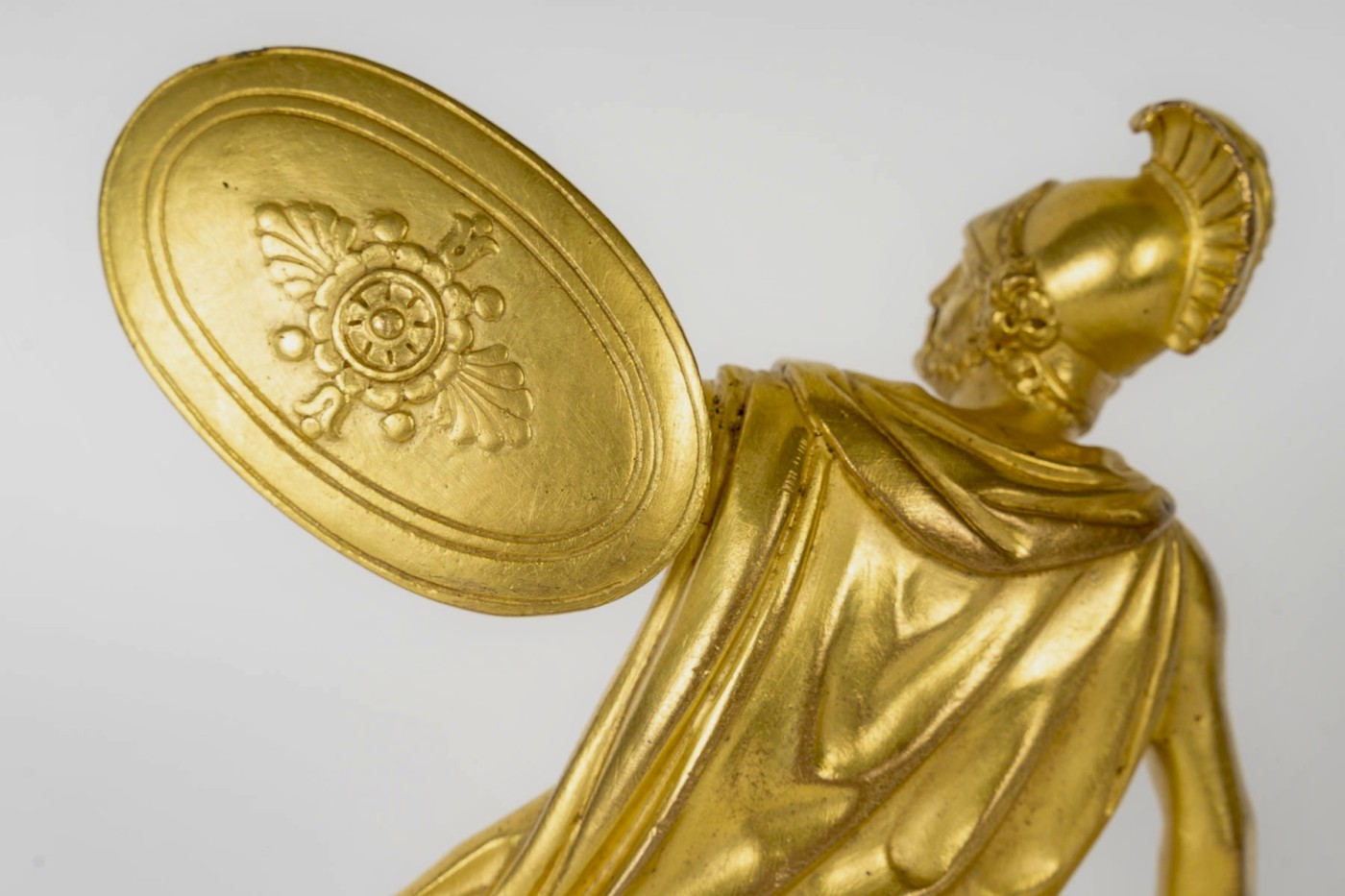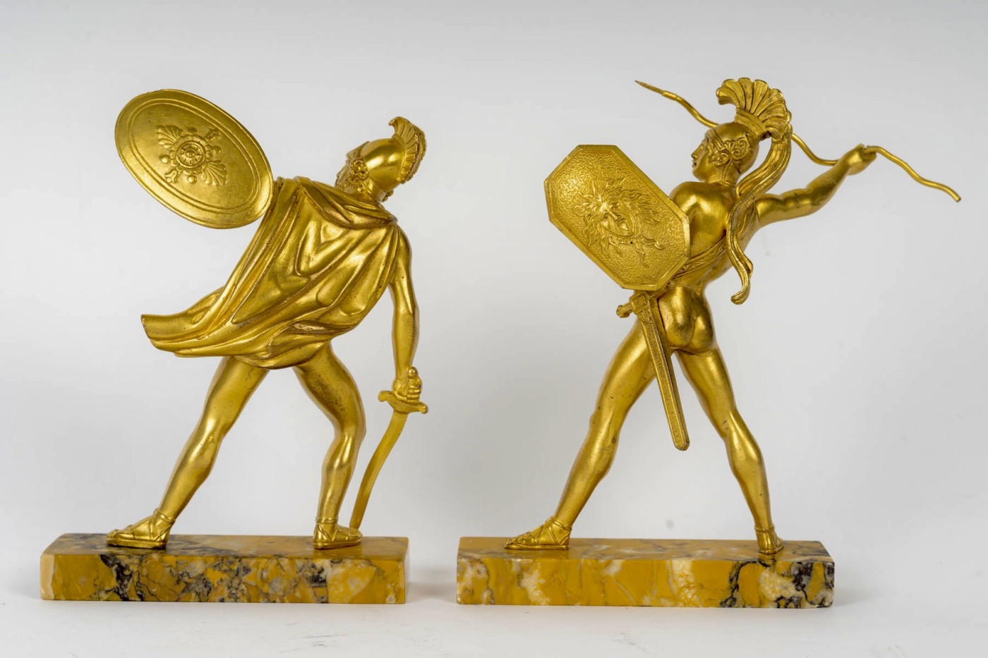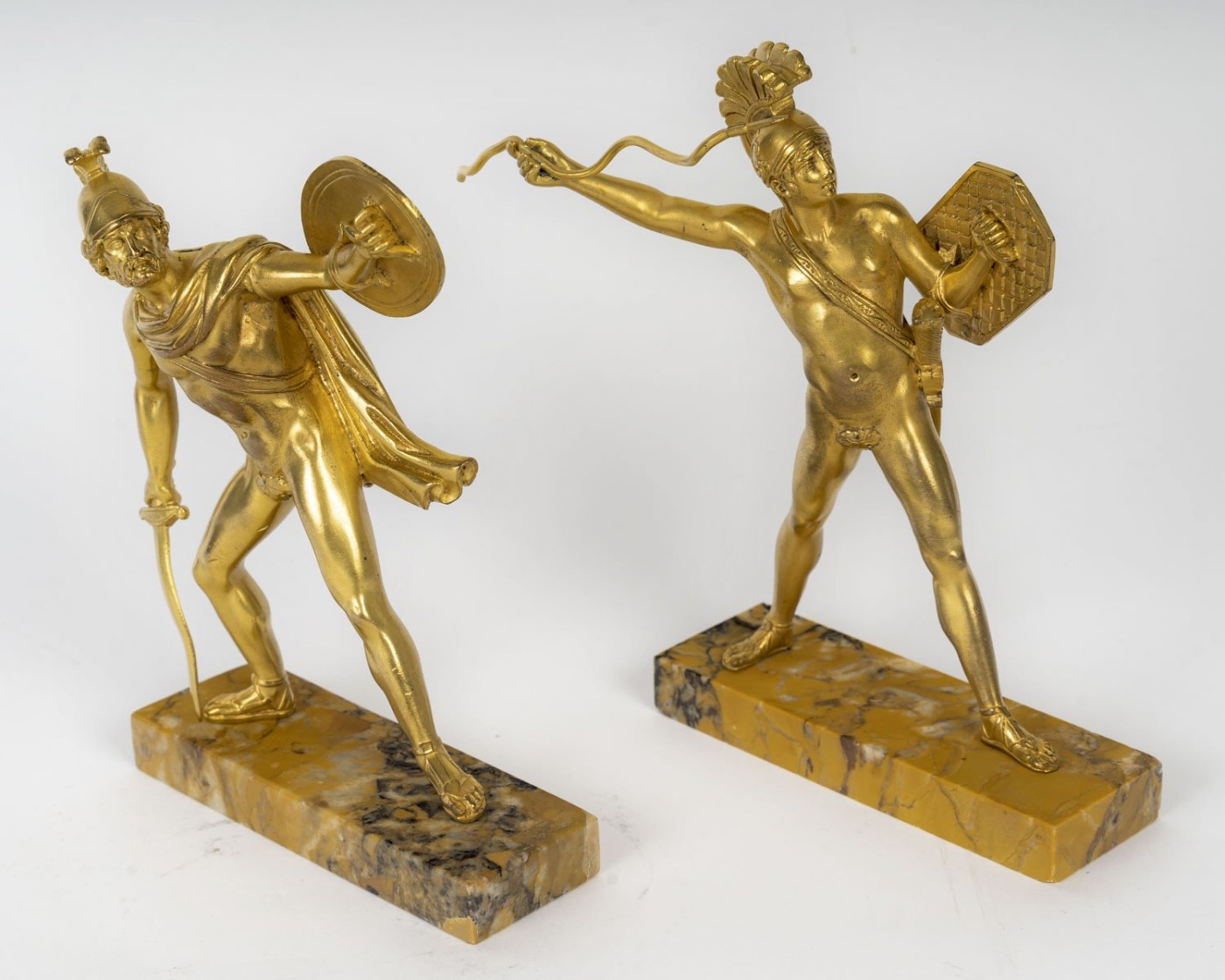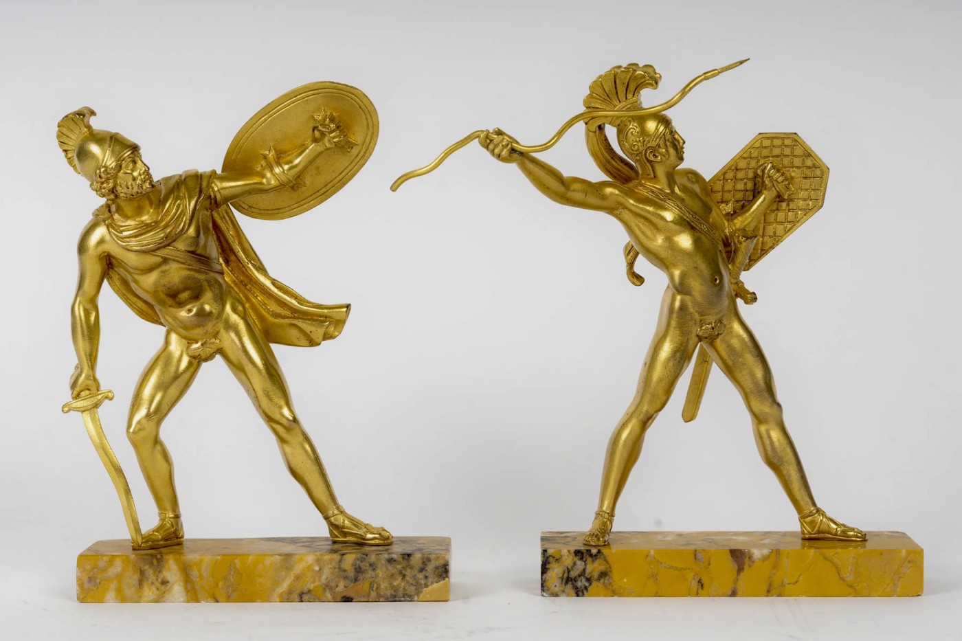 Paire de sculptures en bronze doré et finement ciselé représentant Romolus et Tatius d’après l’oeuvre » les Sabines » de Jacques Louis David.