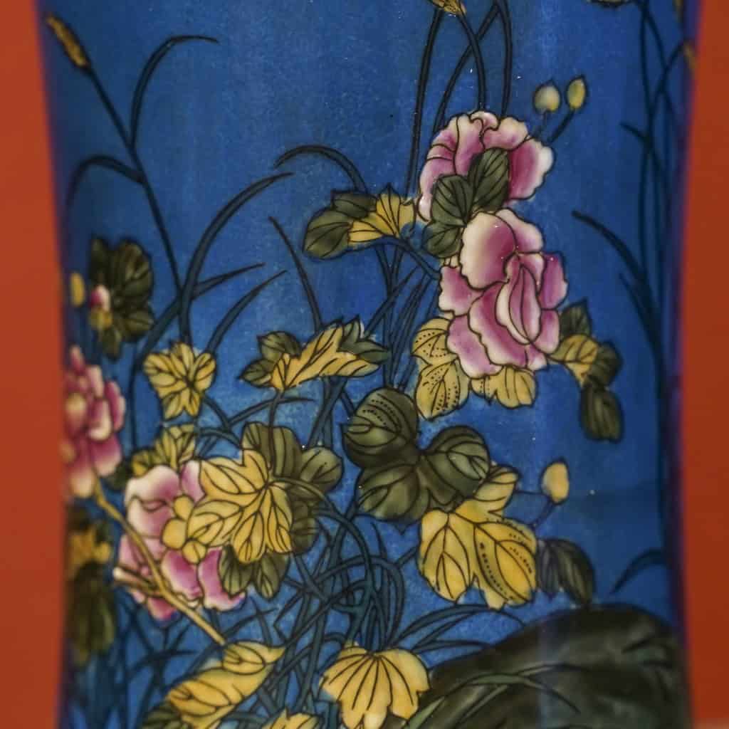 Paire de Vases en porcelaine de bonne dimension : 36 cm ,à fond turquoise, à décor de Grues et fleurs émaillées ( glycines et pivoines )