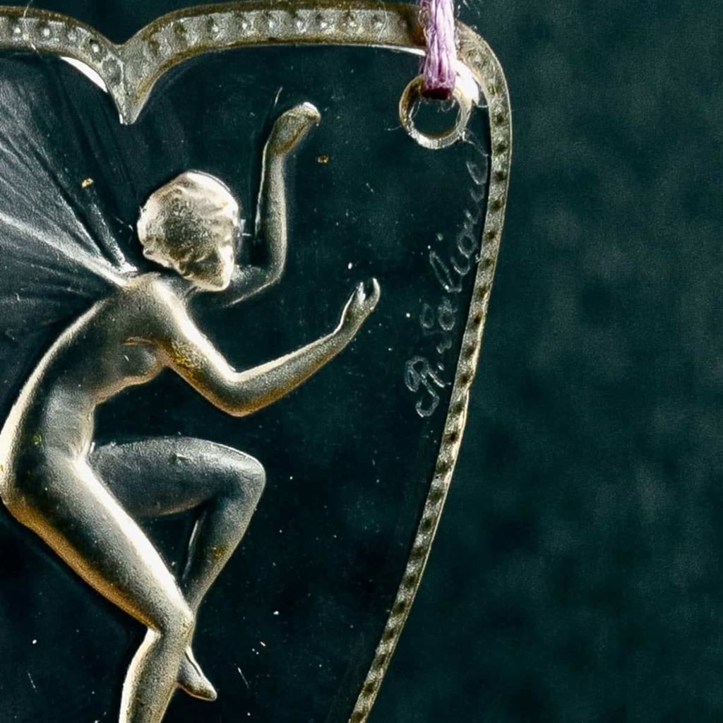 Pendentif « Figurine Ailée » en verre blanc de René Lalique