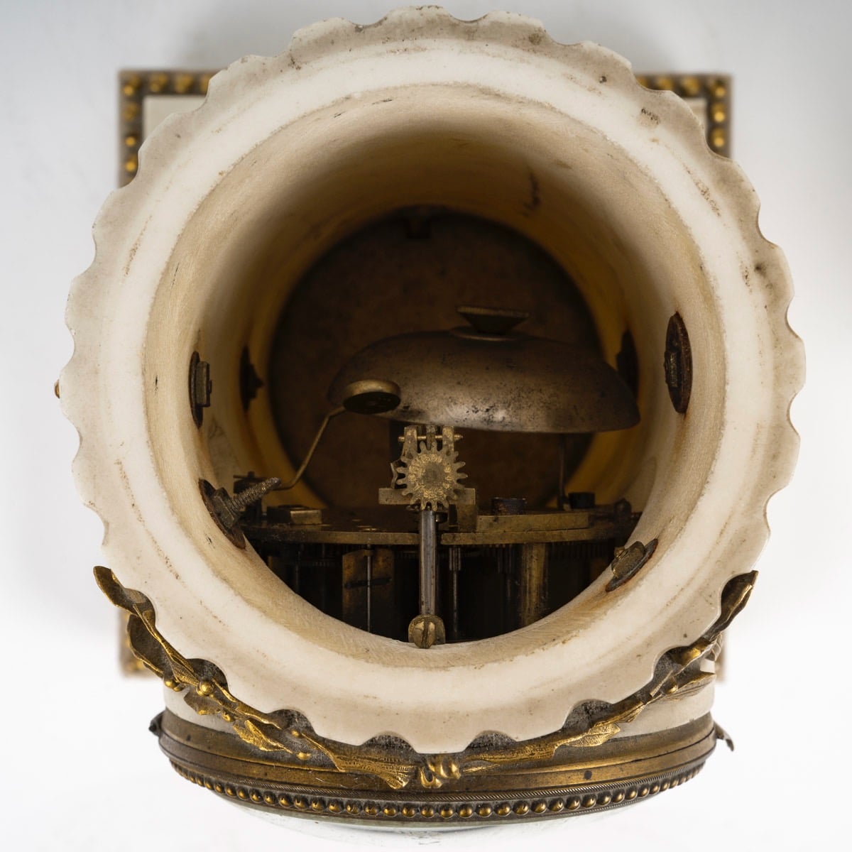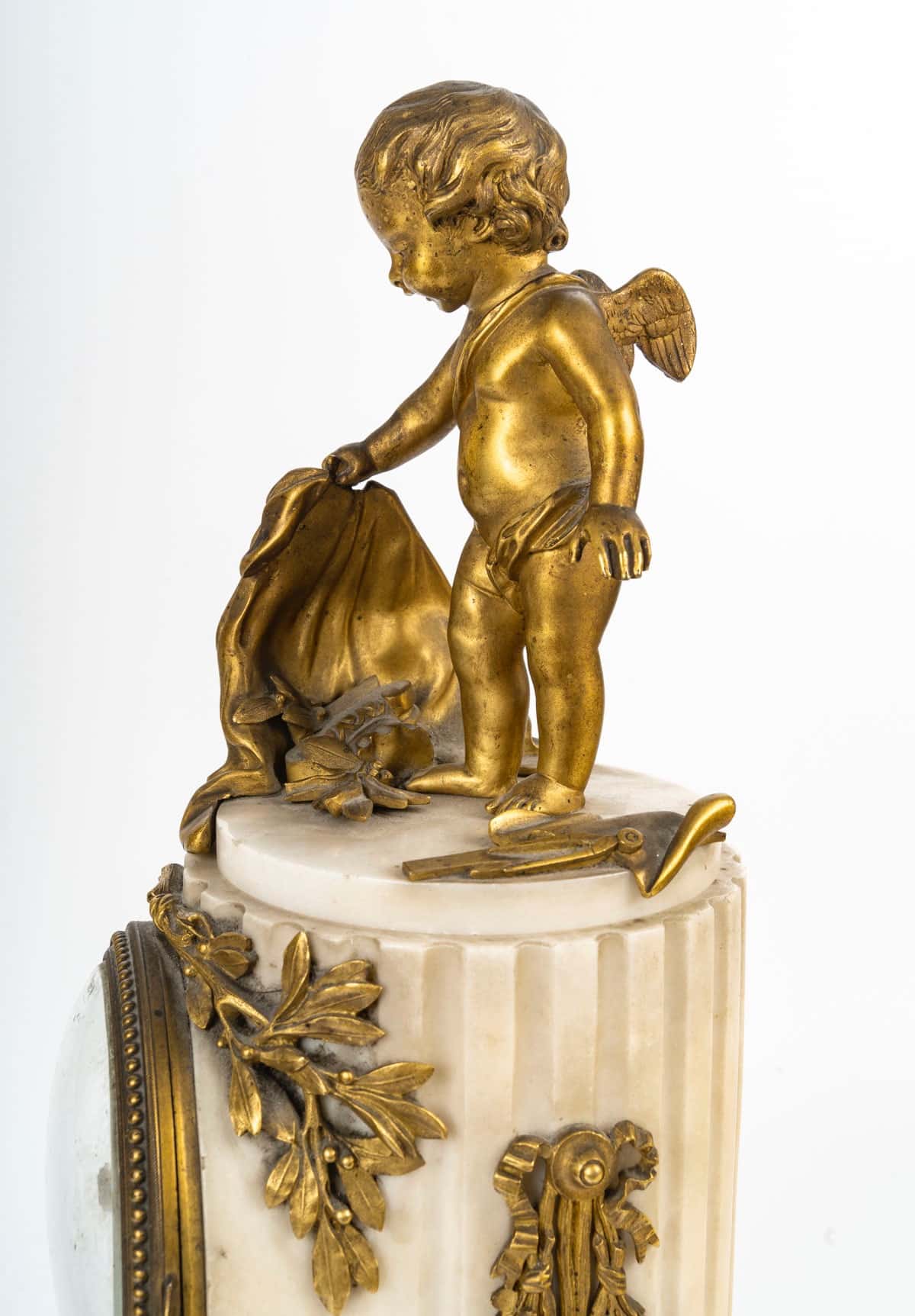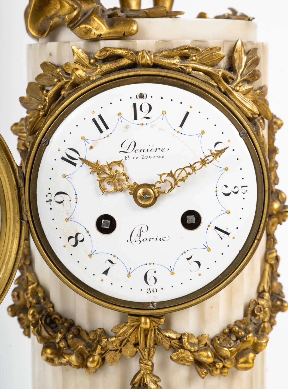 Pendule en marbre blanc et bronze finement ciselé et doré