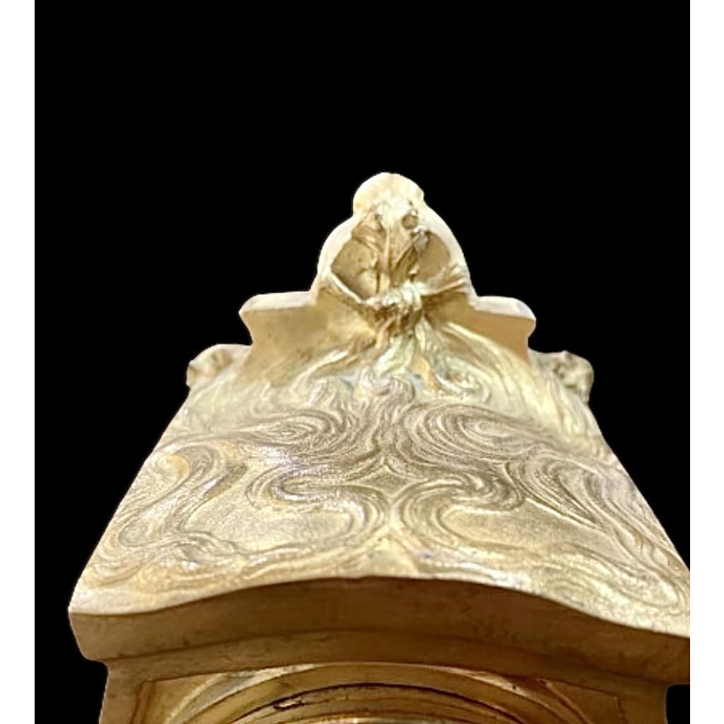 PETITE PENDULE SYMBOLISTE DE LA FONDERIE LOUCHET REPRÉSENTANT LA NUIT AVEC DES SYMBOLES COMME LE PAVOT , DES CHAUVE SOURIS , ET DES ÉTOILES ESTAMPILLÉE LOUCHET SOUS LA PENDULETTE ET NUMÉROTÉE