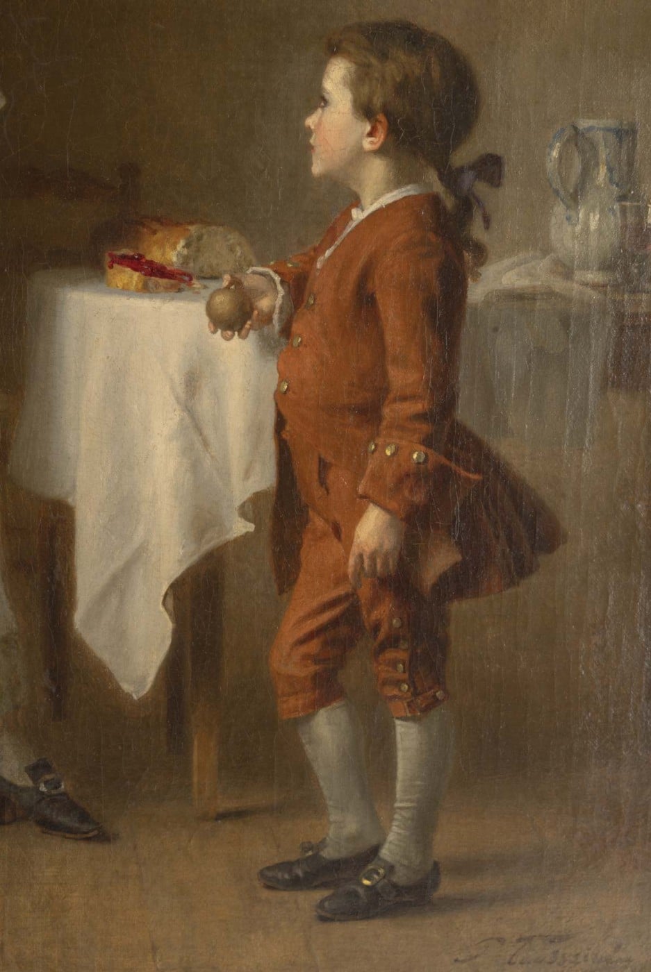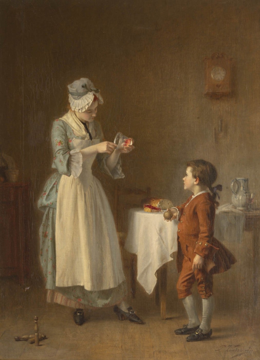 Dans l’esprit de Chardin, voici une scène pleine de tendresse entre une mère et son fils.
