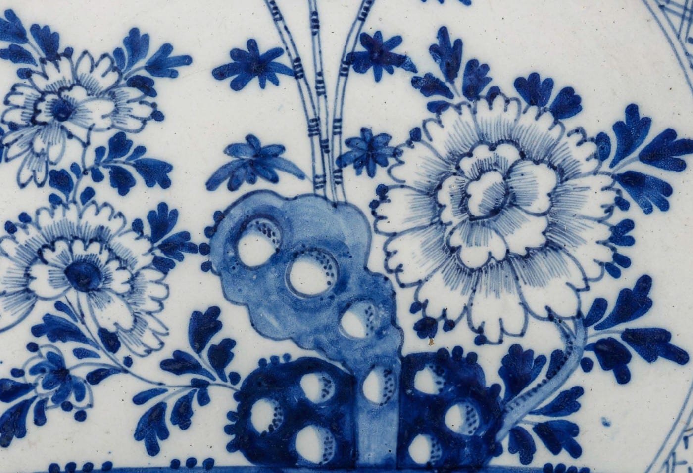 Témoignage remarquable du savoir-faire des faïenceries Delft au milieu du XVIIIe siècle, ce plat date des environs de 1750.