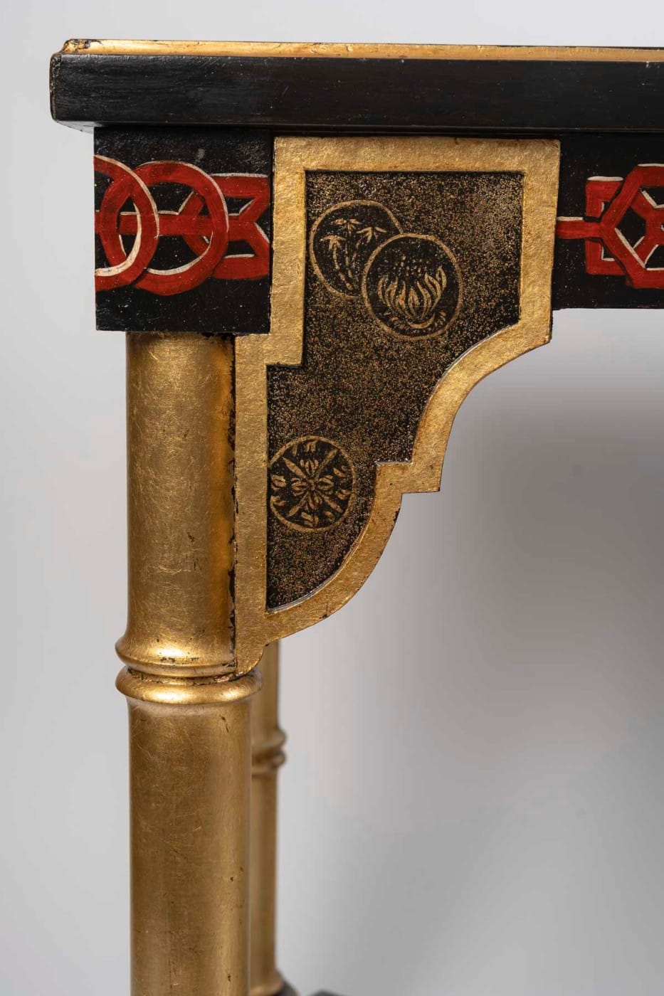 Console de forte présence décorative, destinée à une clientèle cultivée et cosmopolite, à l’époque fascinée par l’esthétique japonaise nouvellement révélée en Europe.