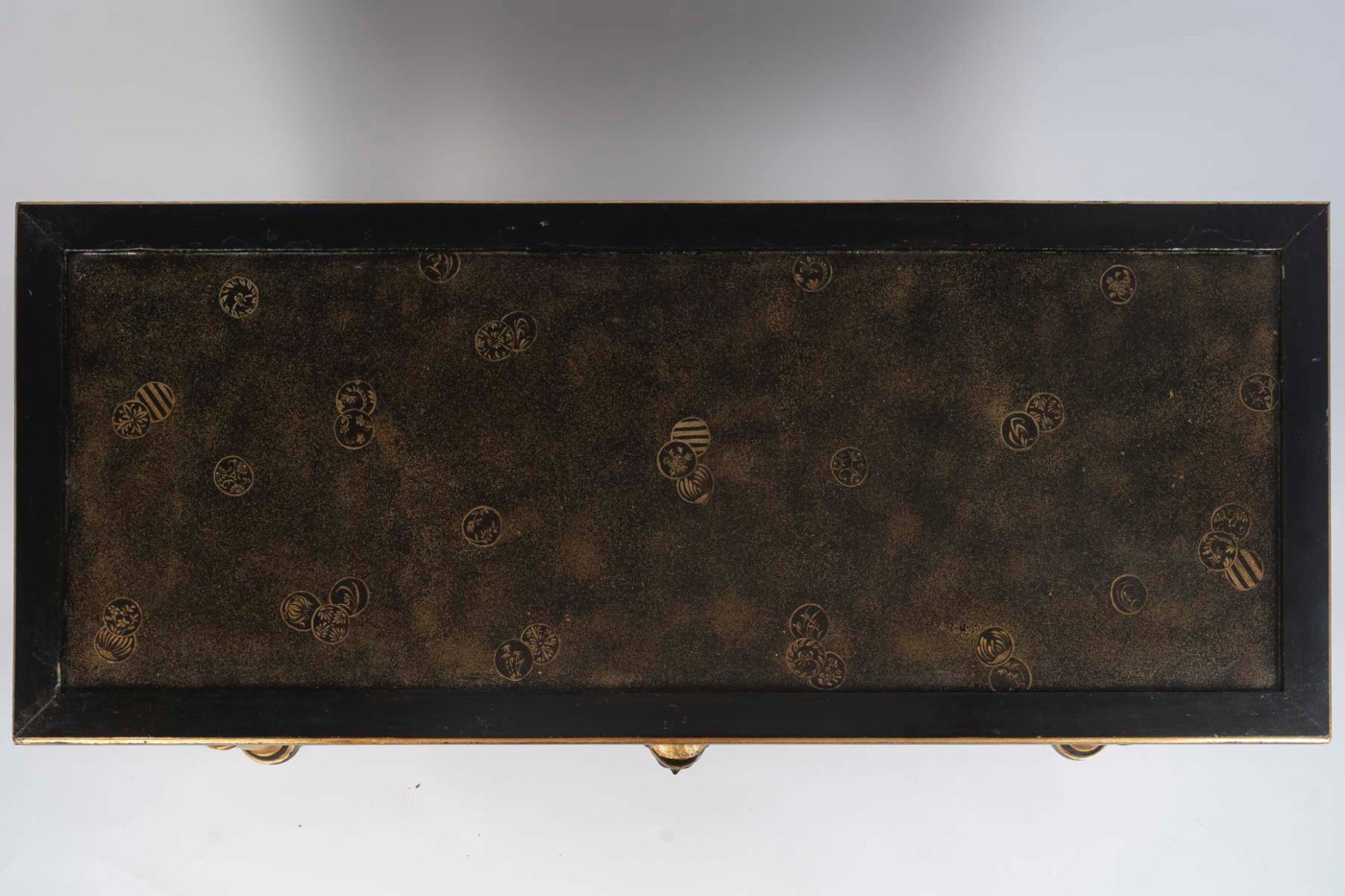 Console de forte présence décorative, destinée à une clientèle cultivée et cosmopolite, à l’époque fascinée par l’esthétique japonaise nouvellement révélée en Europe.