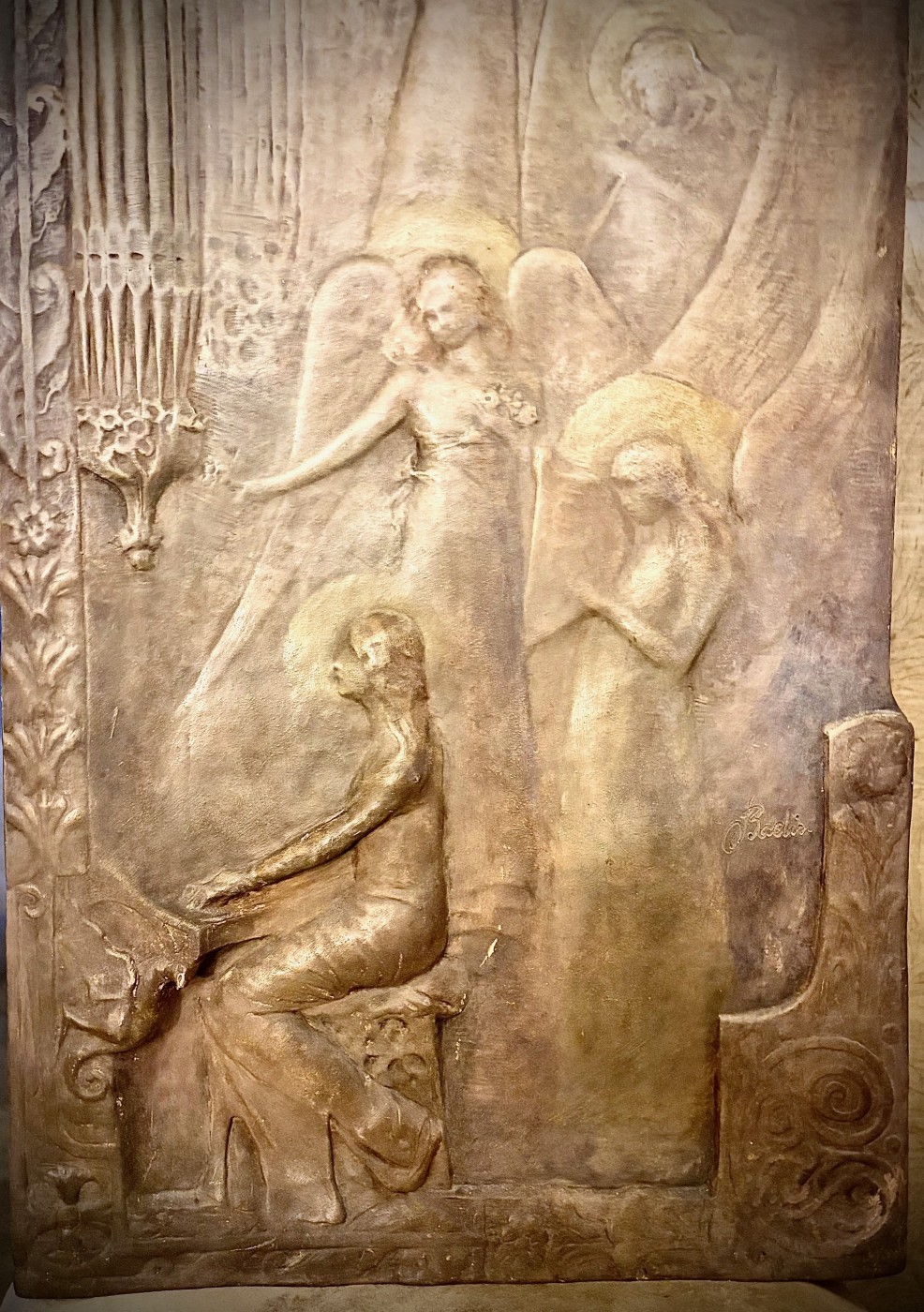 RARE PANNEAU EN TERRE CUITE DE F.GOLDSCHEIDER ET BADIN REPRÉSENTANT UN CONCERT