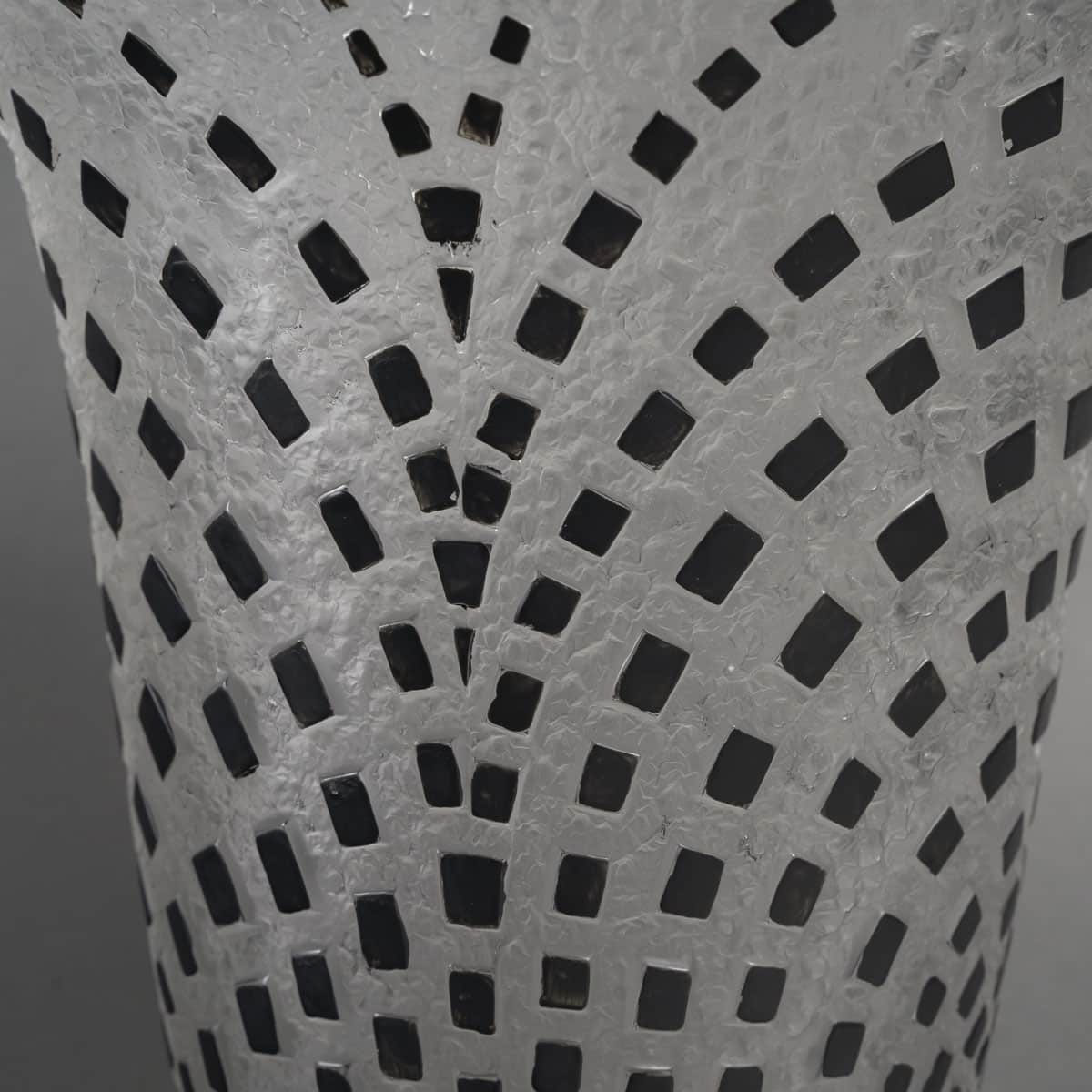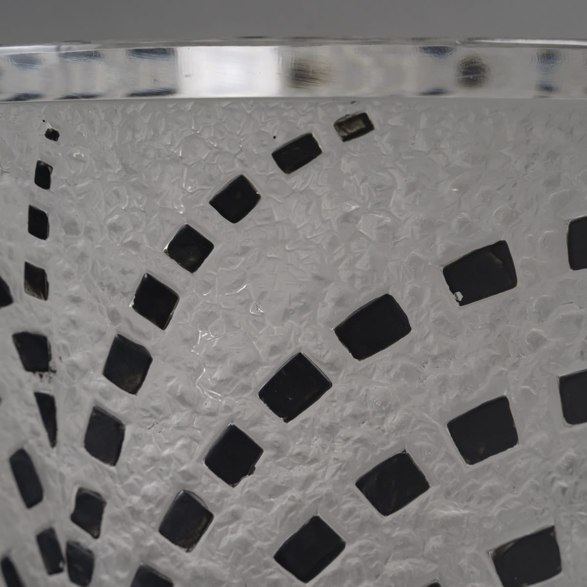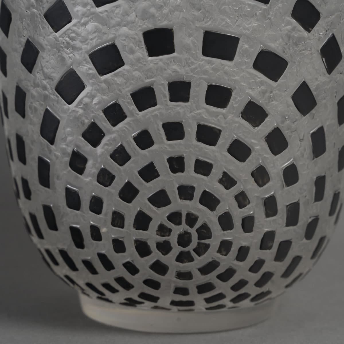 Vase dit « DAMIERS » en verre blanc soufflé moulé patiné à damiers noirs.