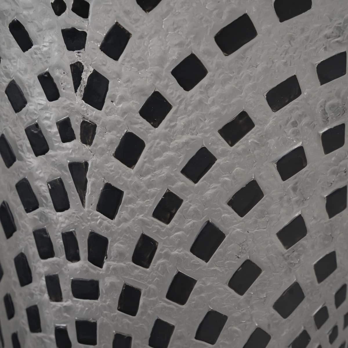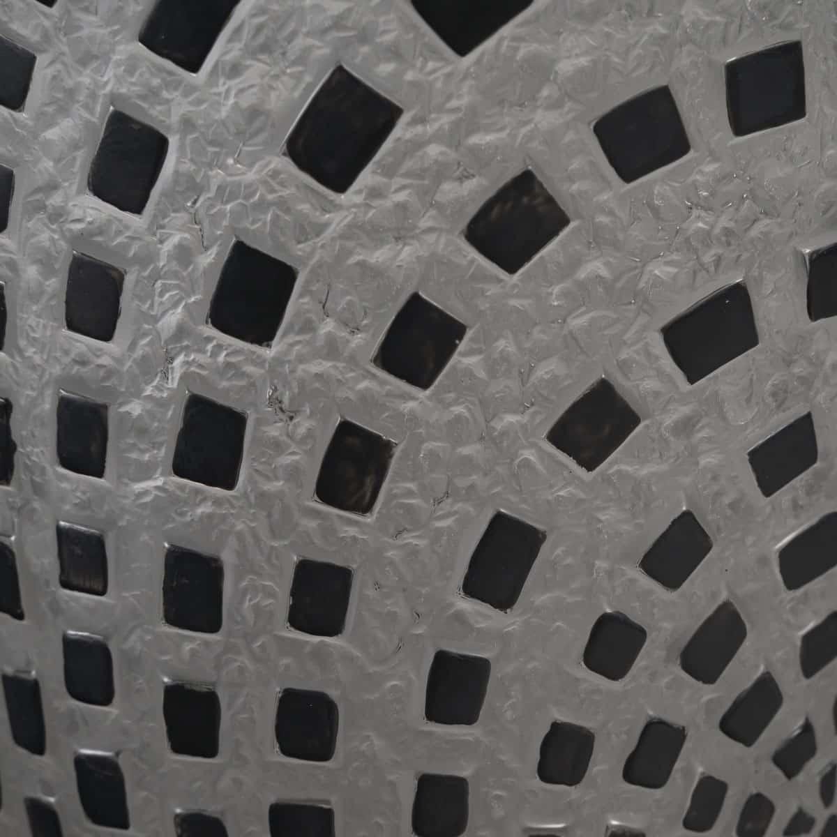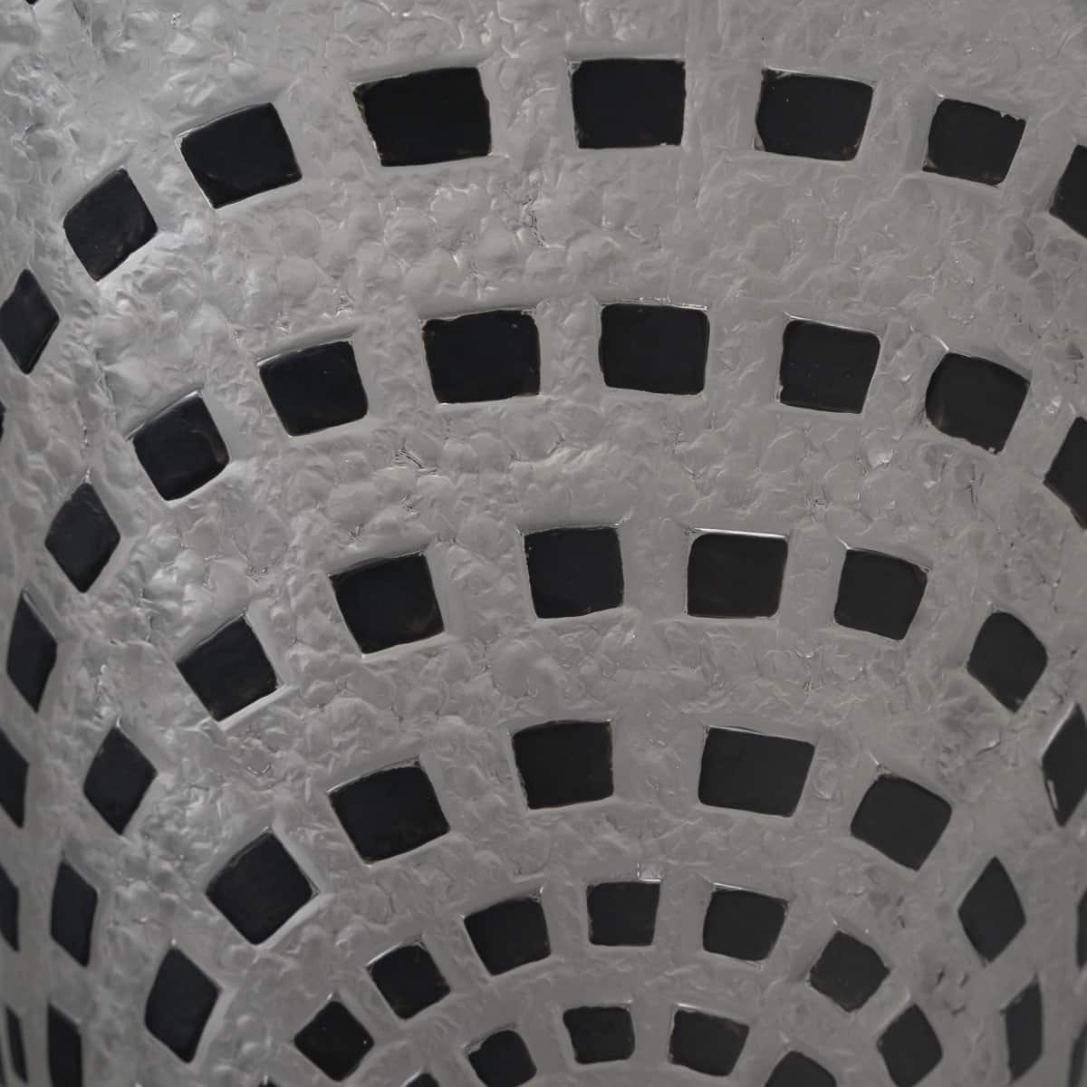 Vase dit « DAMIERS » en verre blanc soufflé moulé patiné à damiers noirs.