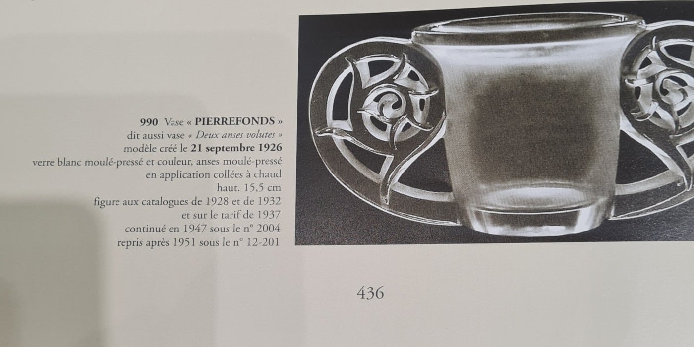 René Lalique (1860 – 1945) –Vase Pierrefonds ou vase aux 2 anses volutes