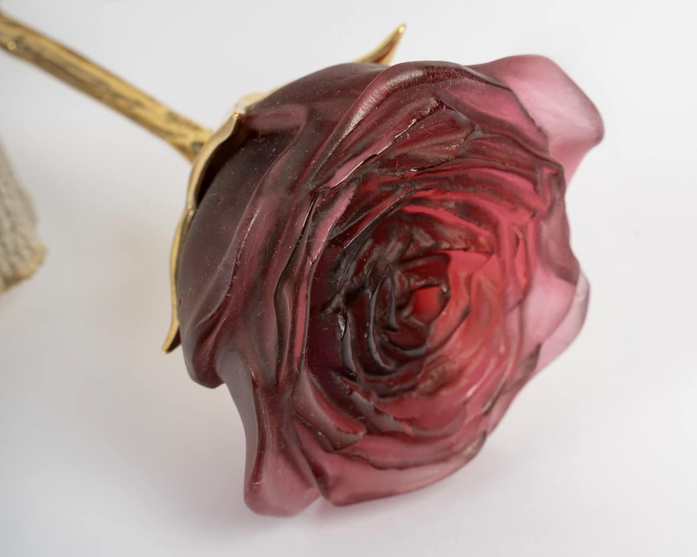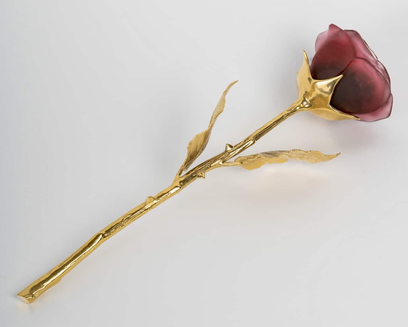 « Rose Eternelle Rouge » pâte de verre rouge et bronze doré de DAUM