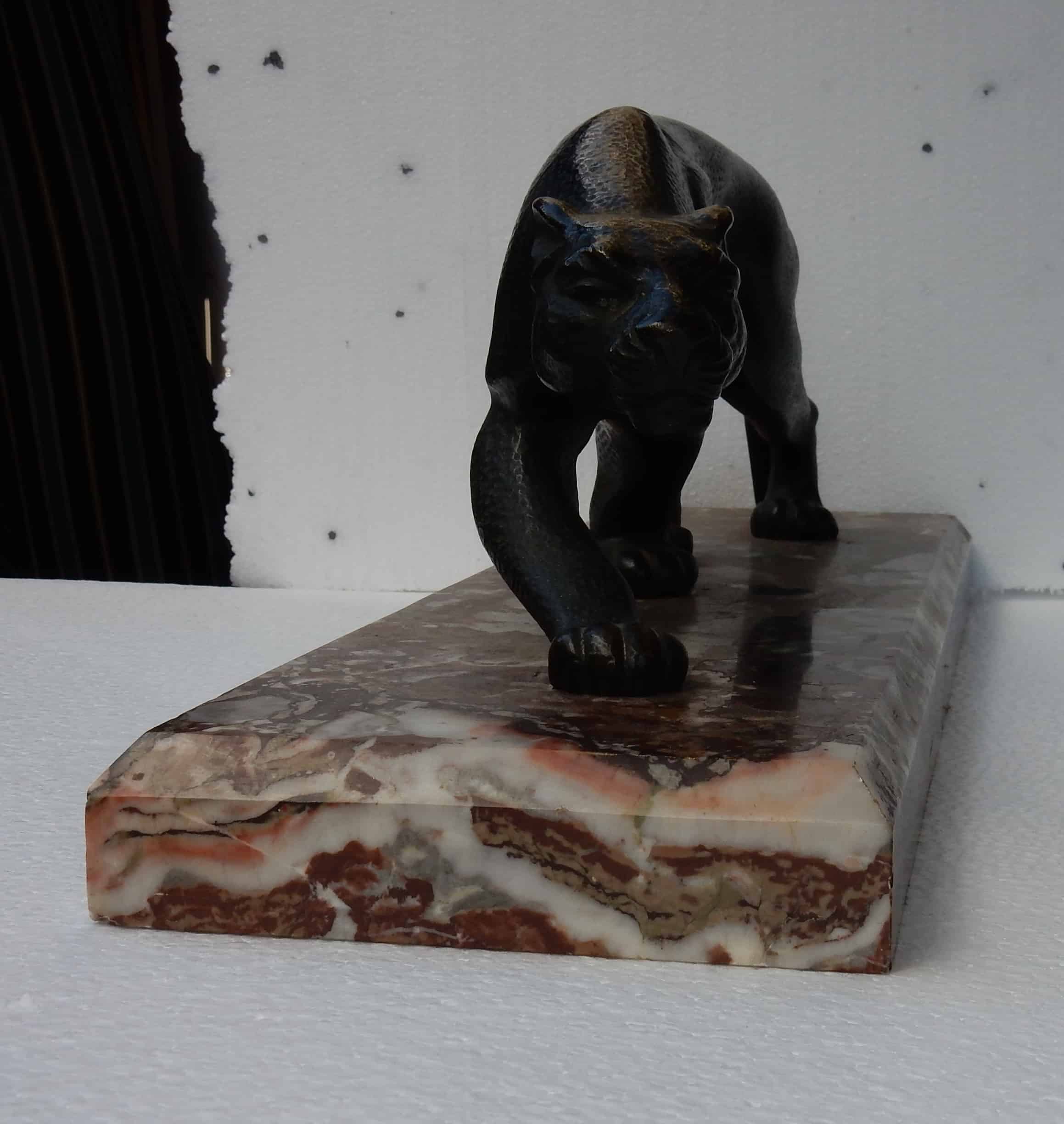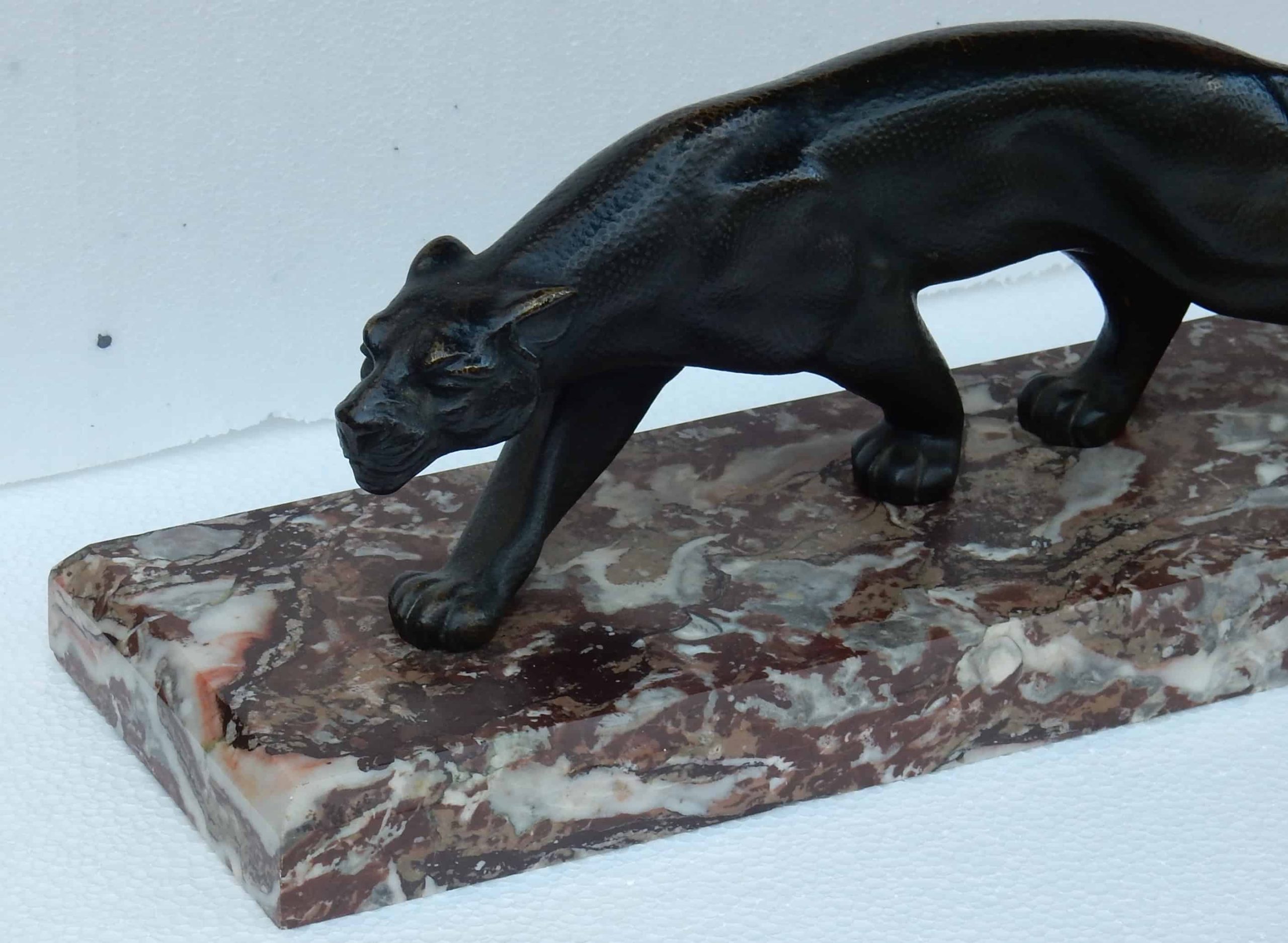 Salvatore MELANI (1902-1934) Panthére en Bronze Sur Marbre Art Deco