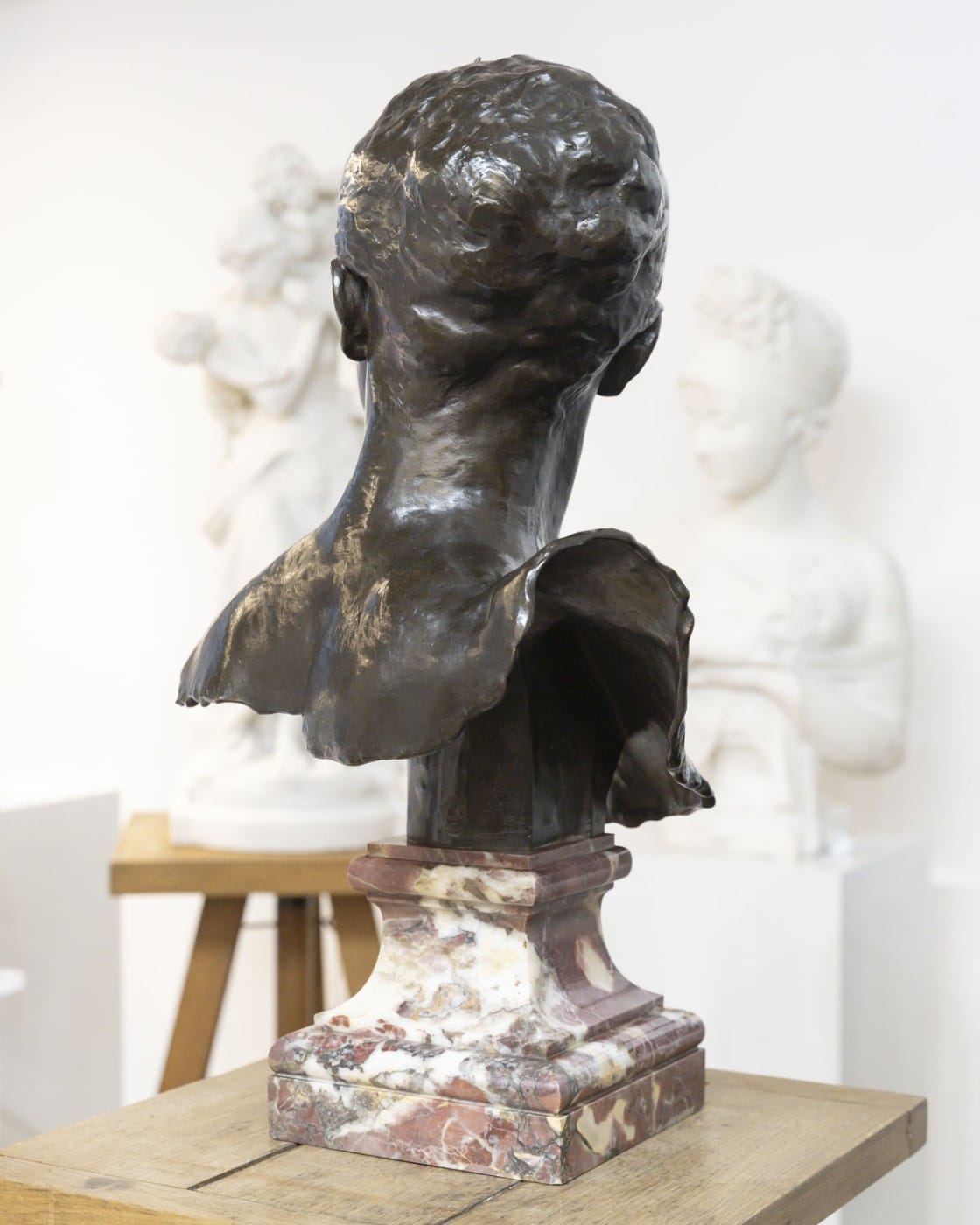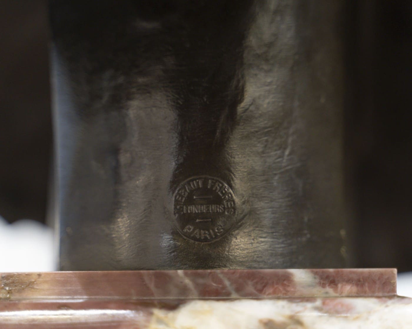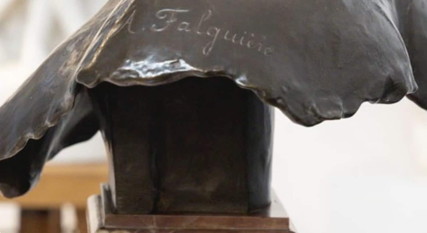Signature du sculpteur « A.Falguière » en creux , et cachet circulaire du fondeur « THIEBAUT FRÈRES FONDEURS PARIS » , au dos du buste .