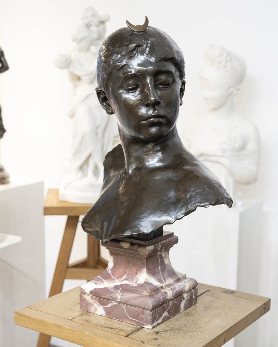 Important buste en bronze , à patine brune , représentant la déesse « Diane » , par le sculpteur Alexandre Falguière (1831-1900) .