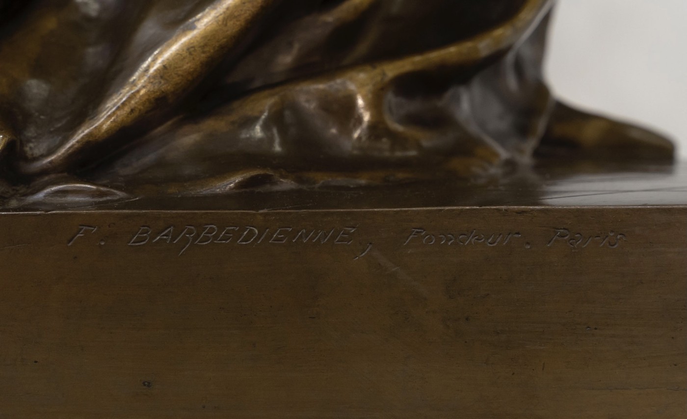 Marque du fondeur « F.BARBEDIENNE.Fondeur.Paris » , sur le coté gauche de la terrasse .