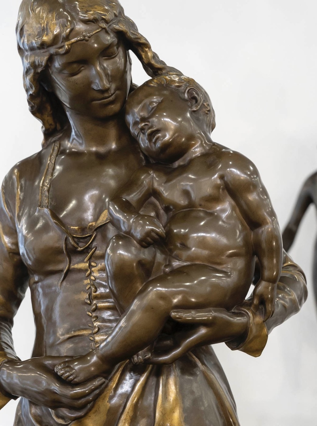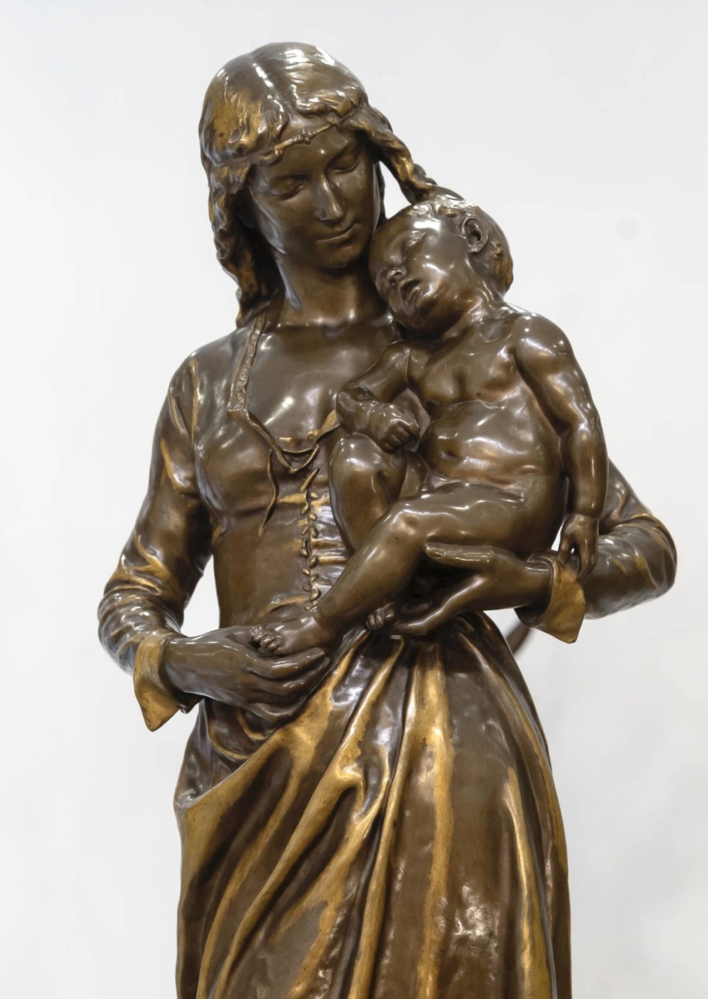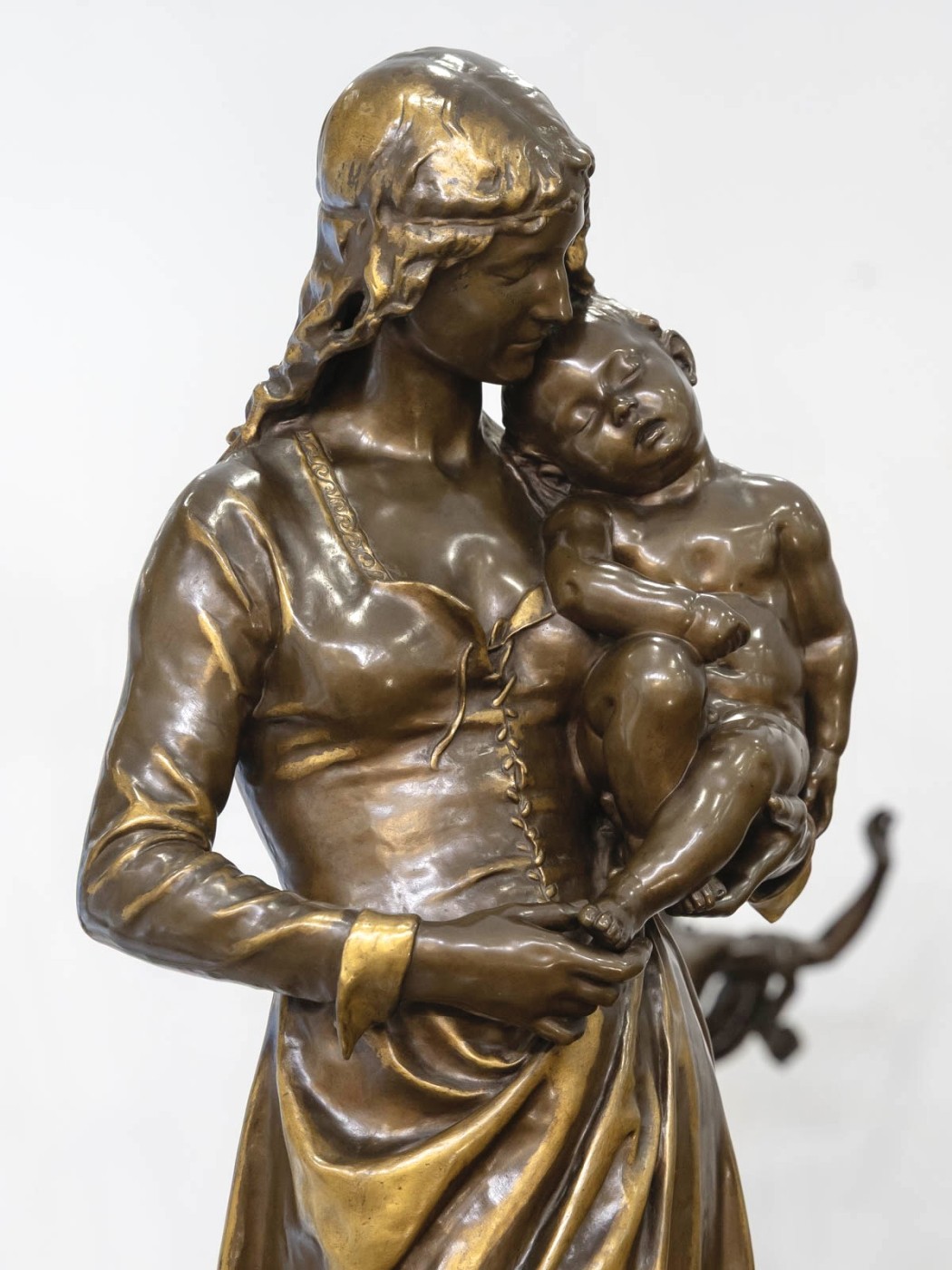 Important et majestueux groupe en bronze , à double patines , brune et or , figurant la célèbre poétesse Clotilde de Surville , portant dans ses bras son enfant , par le sculpteur Jean Gautherin (1840-1890) .