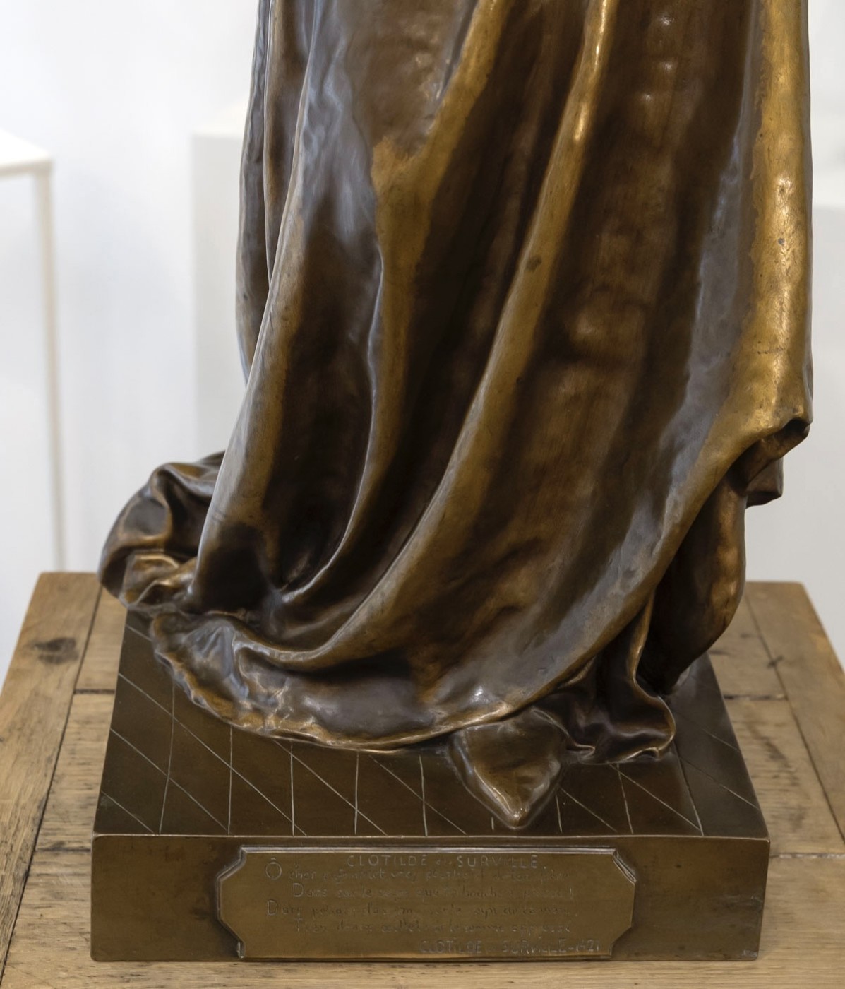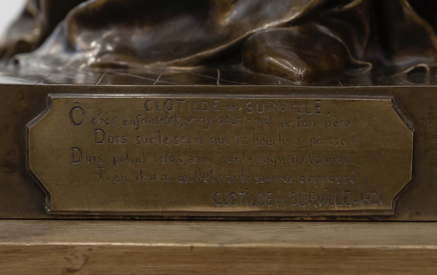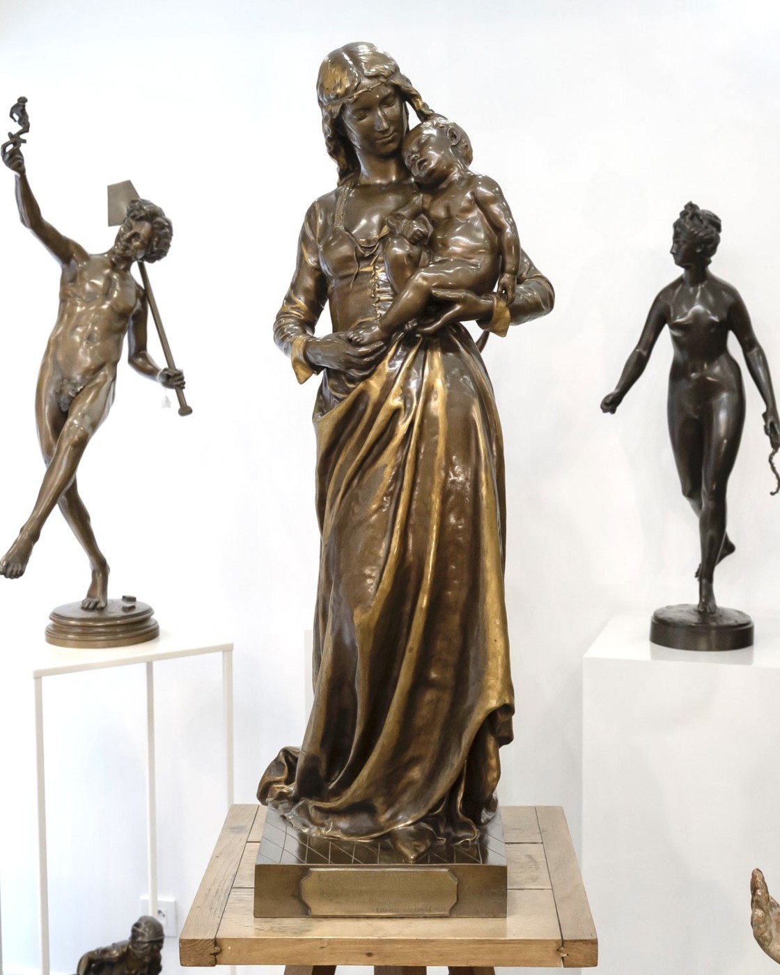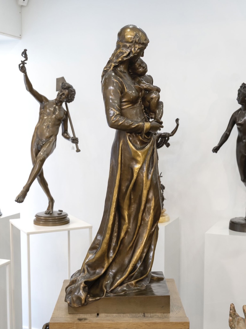 Important et majestueux groupe en bronze , à double patines , brune et or , figurant la célèbre poétesse Clotilde de Surville , portant dans ses bras son enfant , par le sculpteur Jean Gautherin (1840-1890) .