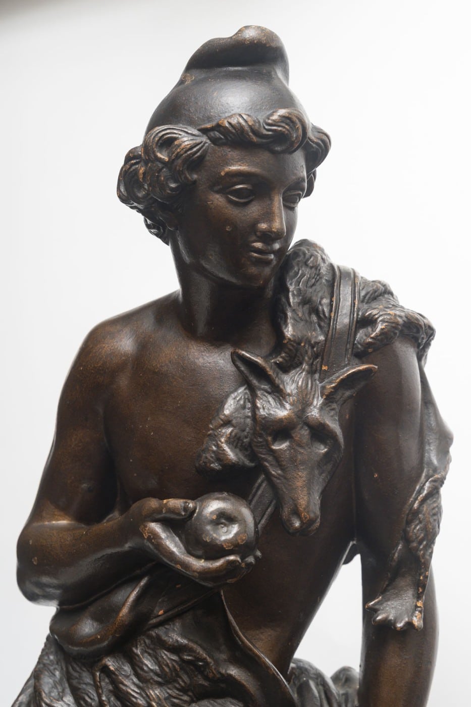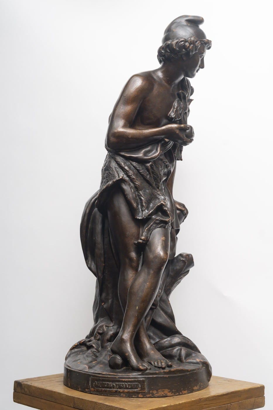 Cette sculpture en fonte de fer, éditée par la fonderie J.-J. Ducel au XIXᵉ siècle, représente le berger Pâris tenant la pomme d’or, en référence à l’épisode mythologique du Jugement de Pâris.