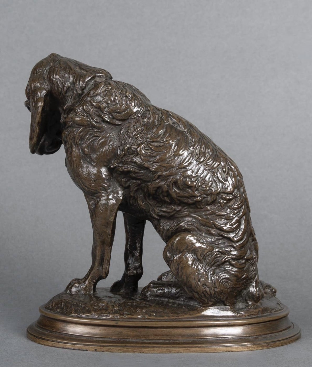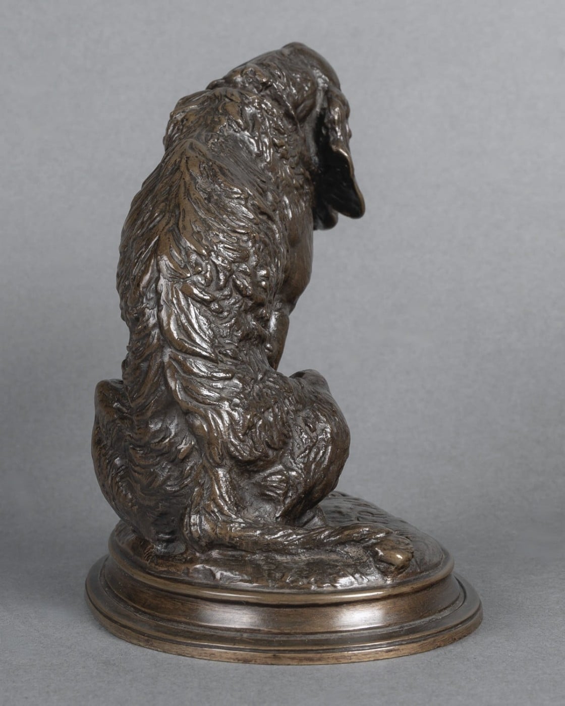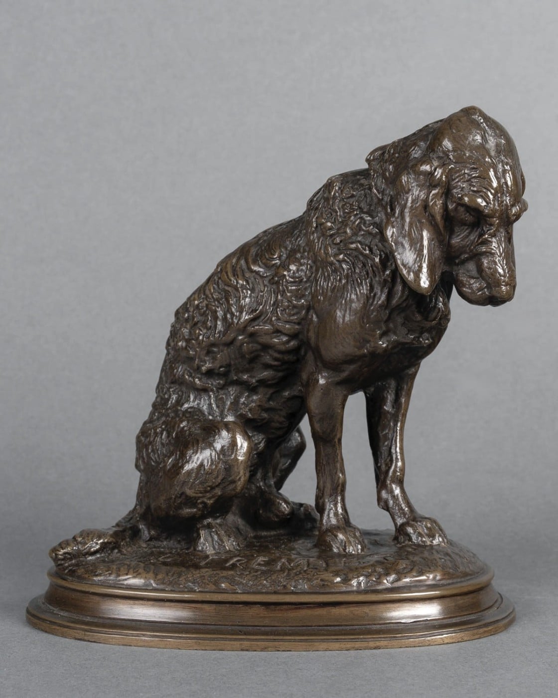 Épreuve en bronze à patine brune , représentant un chien terrier de race épagneul , par le sculpteur Emmanuel Frémiet (1824-1910) .