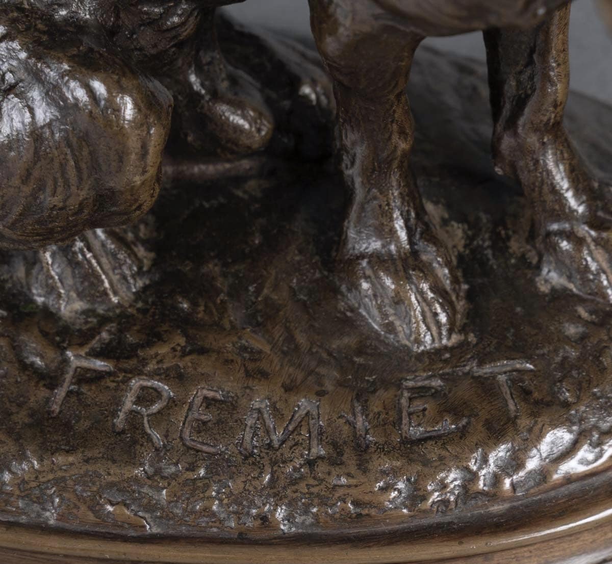 Bronze signé « E.FRÉMIET » , sur la terrasse ovale naturaliste , richement ciselée .