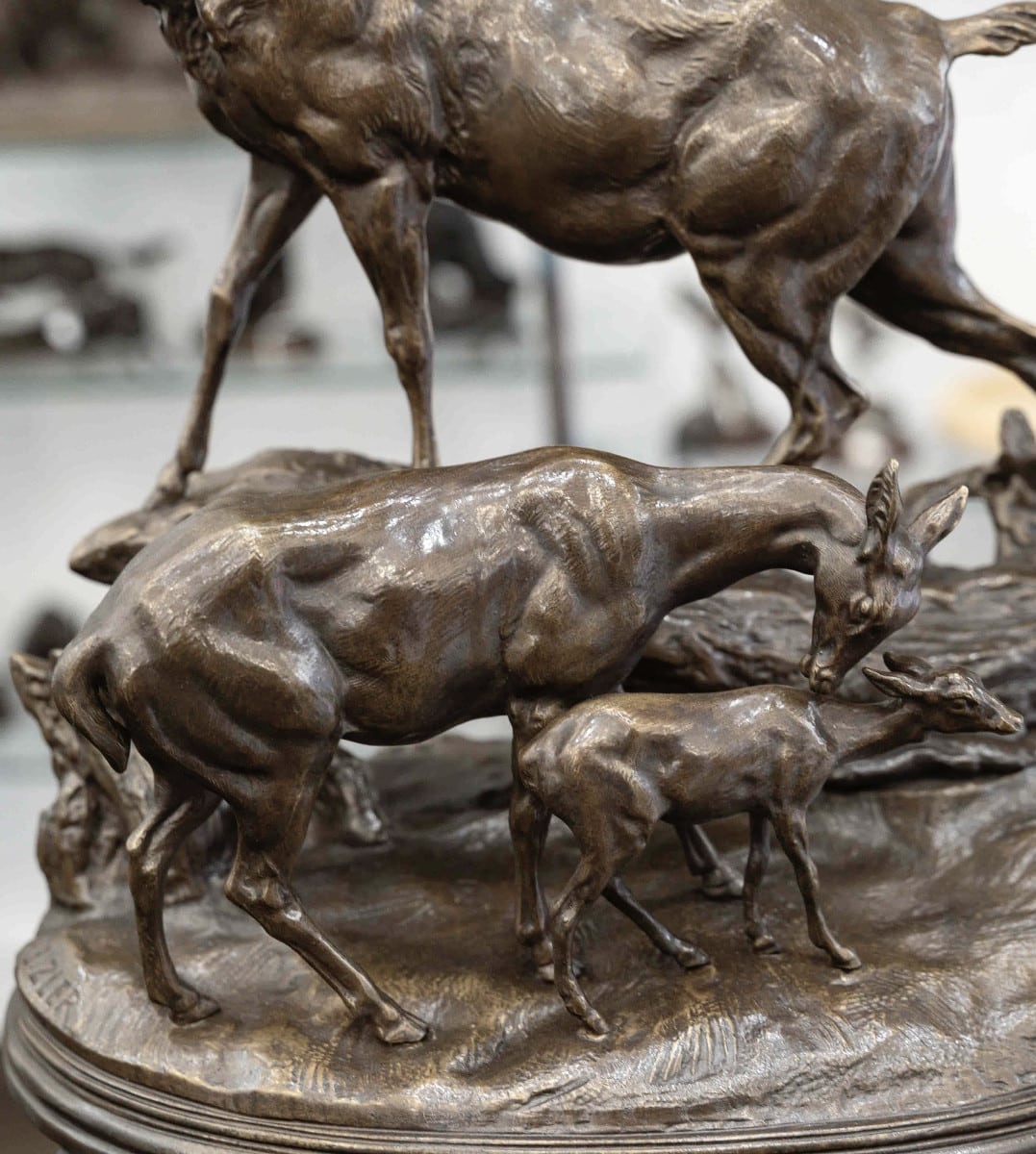 Sculpture – Famille De Cervidés , Hippolyte Heizler (1828-1871) – Bronze